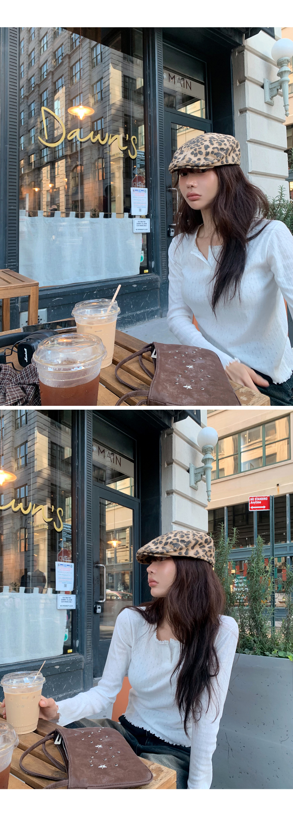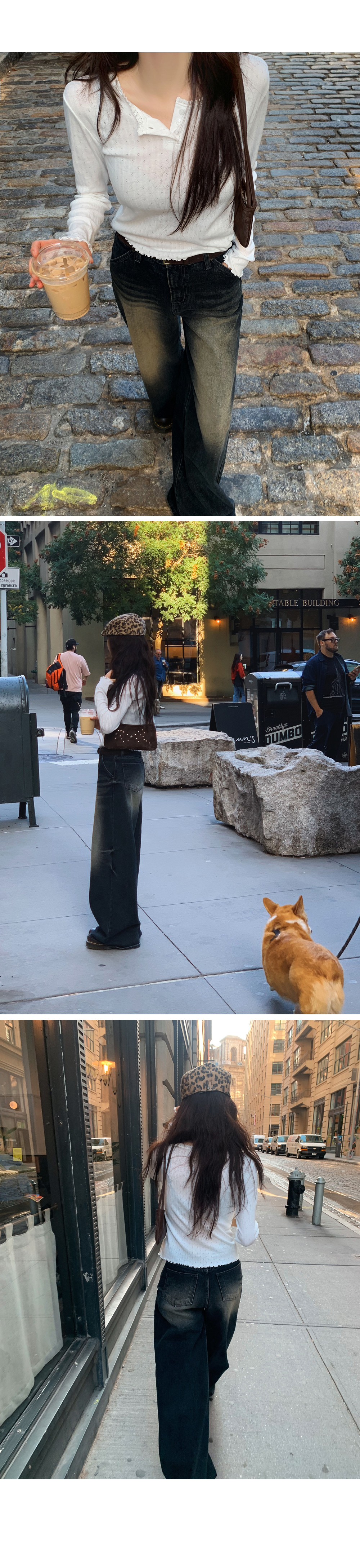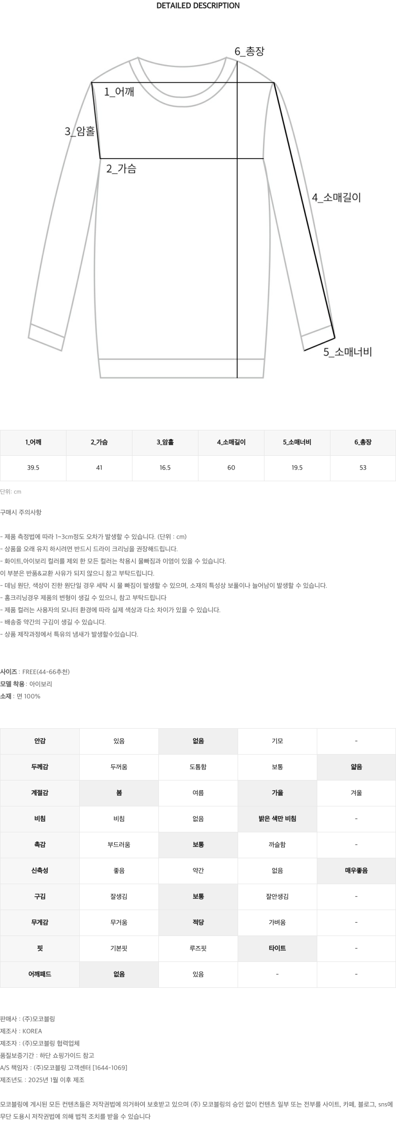 # 넥라인 레이스와 버튼 포인트의 펀칭 긴팔티