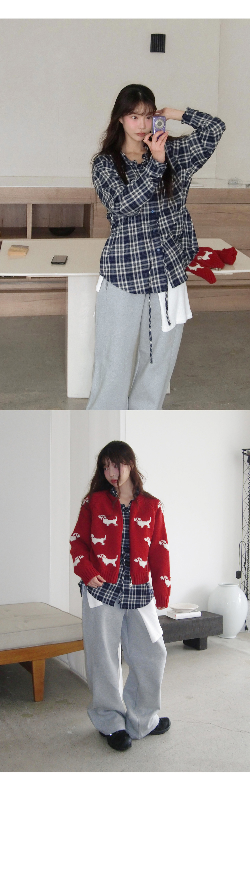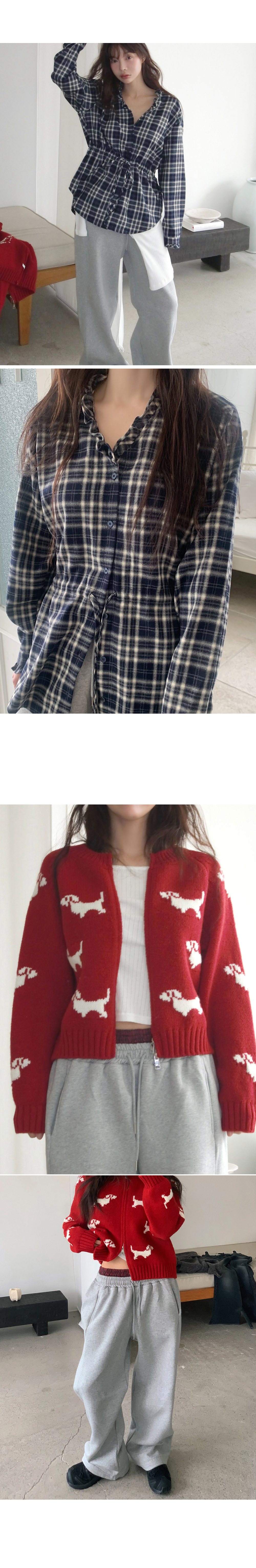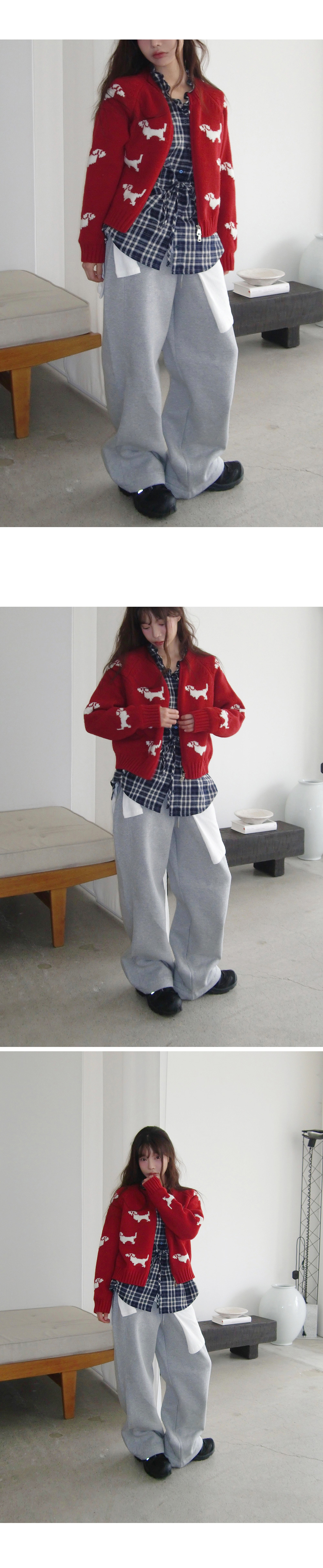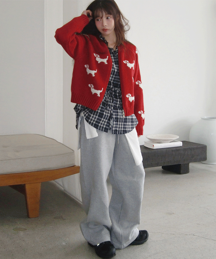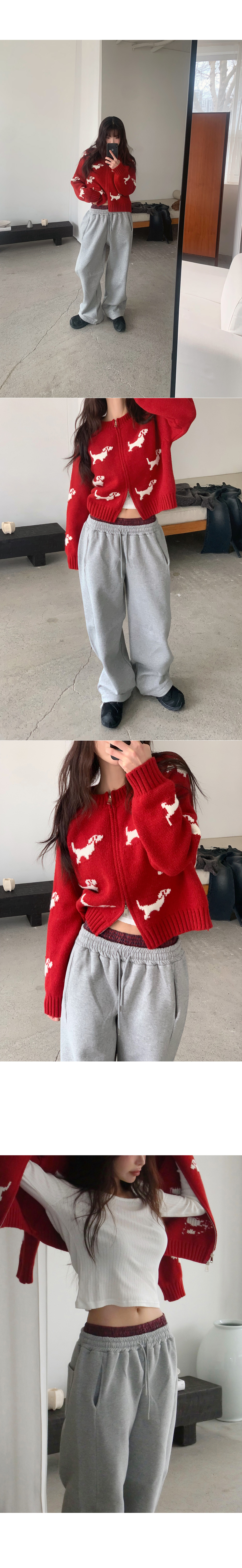 # 귀여운 강아지 패턴의 라운드넥 투웨이 니트집업