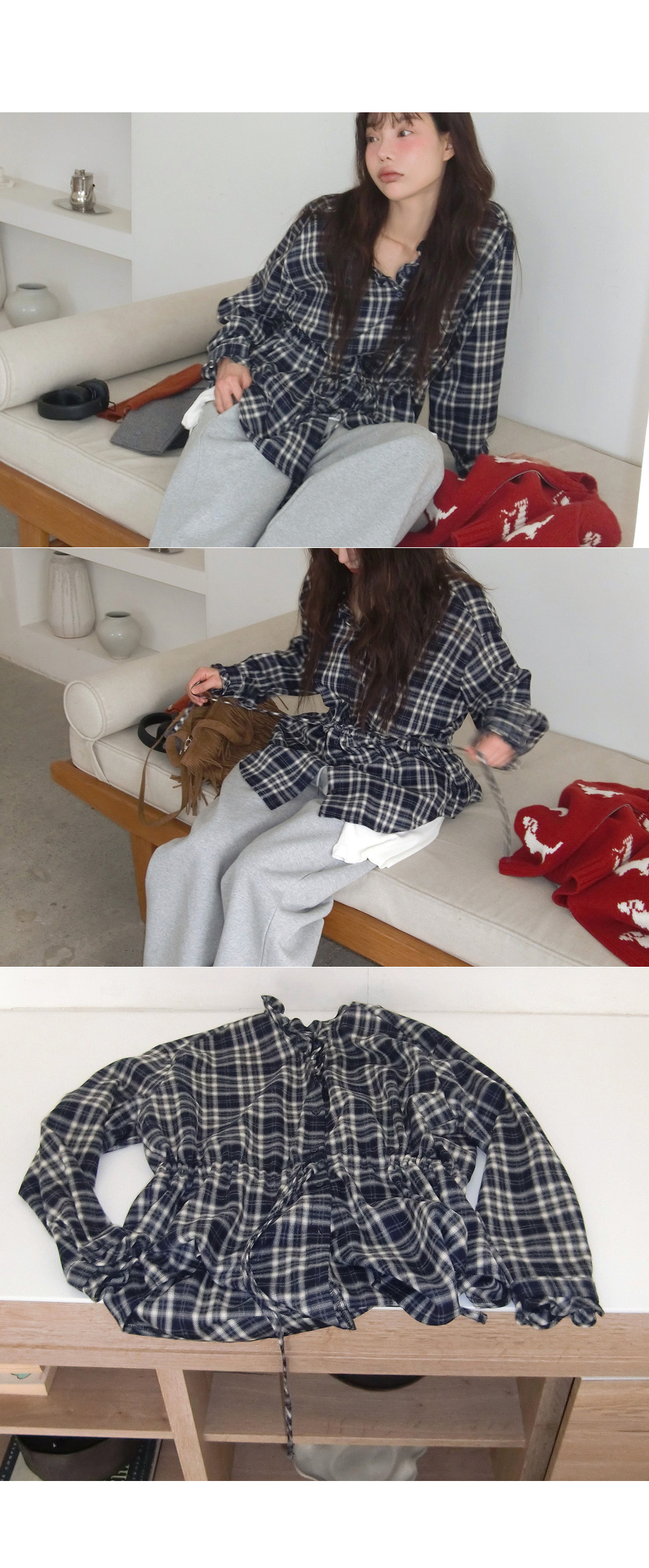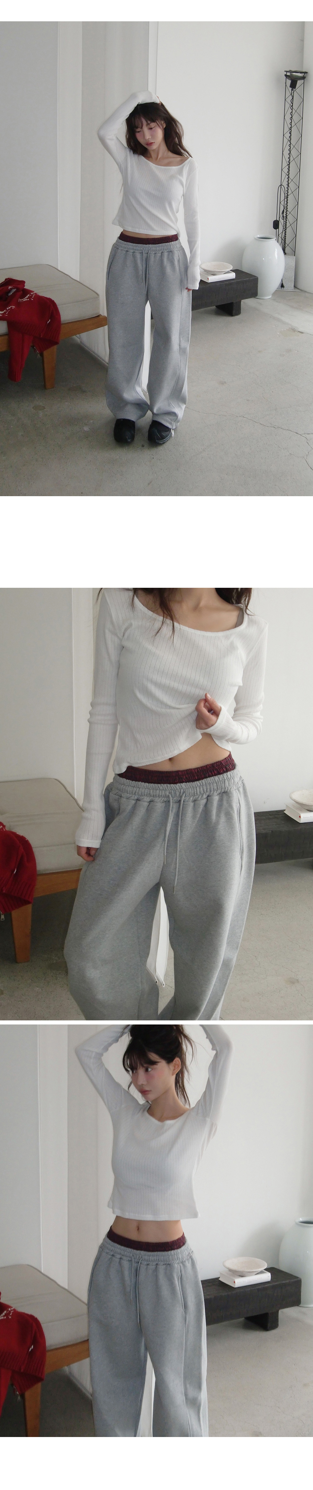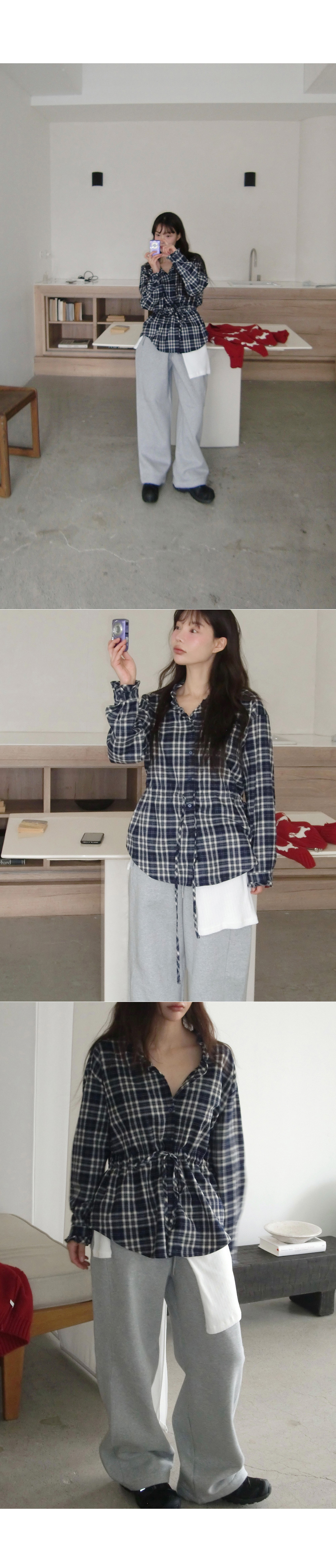 “골반은 평균이며 엉덩이가 작고 하의는 S사이즈를 입어요. 다리가 긴 편이라서 짧 은 기장감의 하의는 M사이즈도 입어요. 상의는 어깨가 있는 편이고 가슴사이즈는75C입니다.”