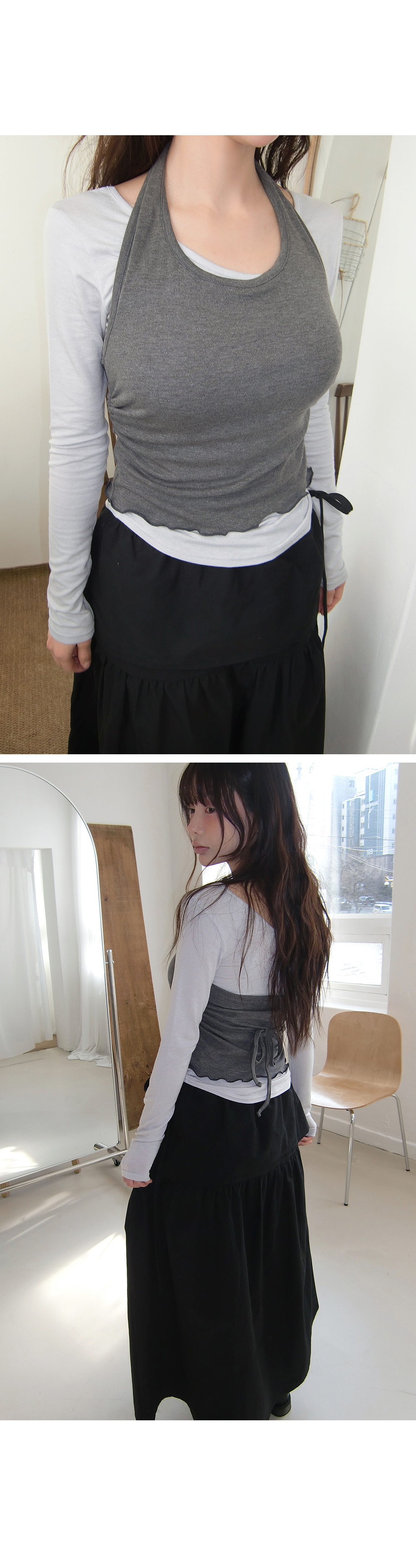 # 레이어드 하기 좋은 셔링 스트랩 홀터넥