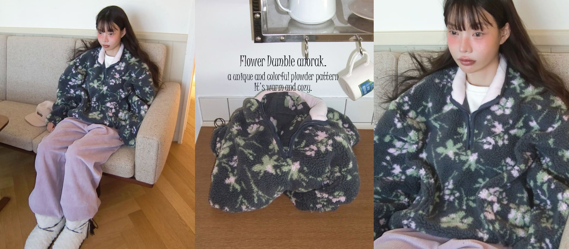 플라워 덤블 아노락 #오버핏아노락 #덤블아노락 #투웨이아노락 #양털아노락 #삿포로