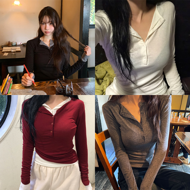 [MADE/오늘출발,무배]텐셀 골지 단추 티셔츠 #이너티 #레이어드티 #텐셀티 #단추티 #티셔츠 #골지티 #버튼티 #봄옷