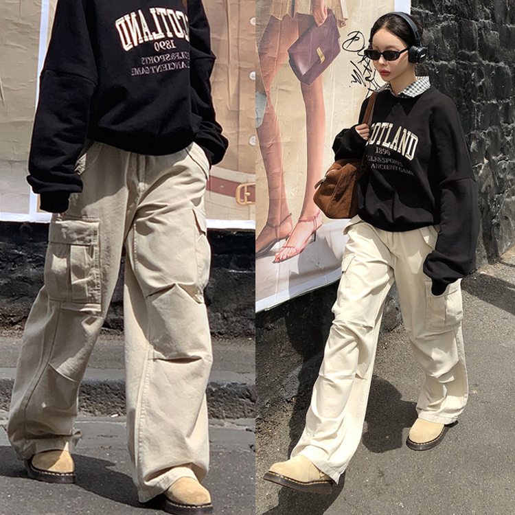 # 캐주얼하고 트렌디한 무드의 코튼 카고 팬츠