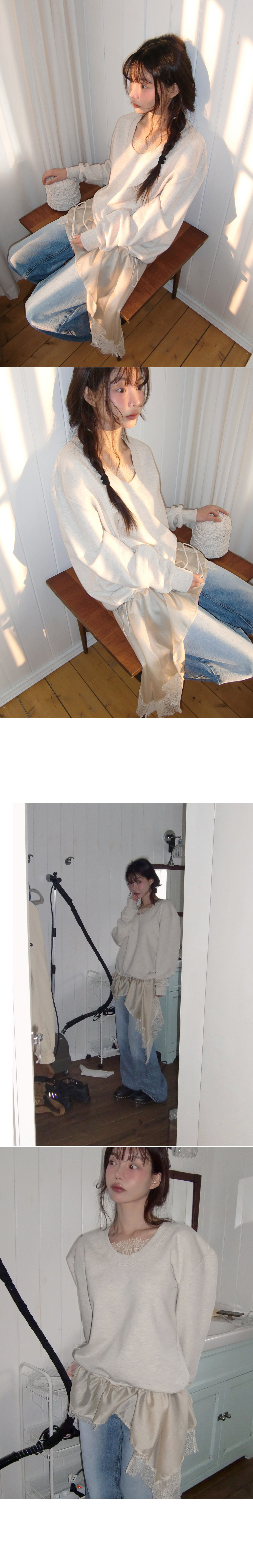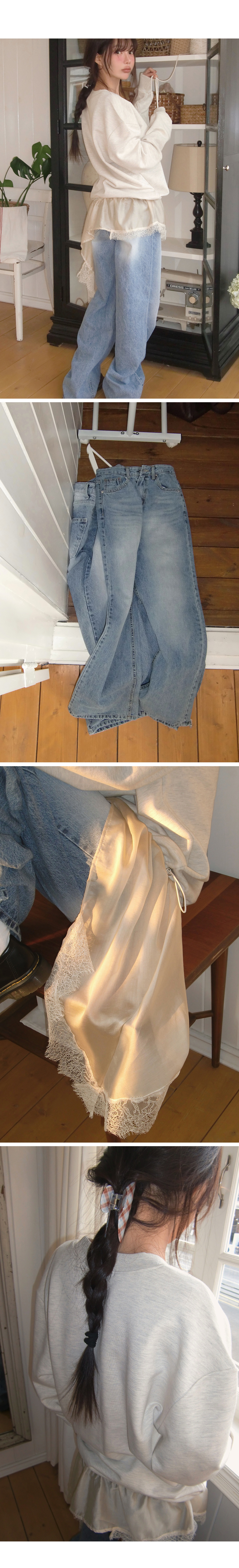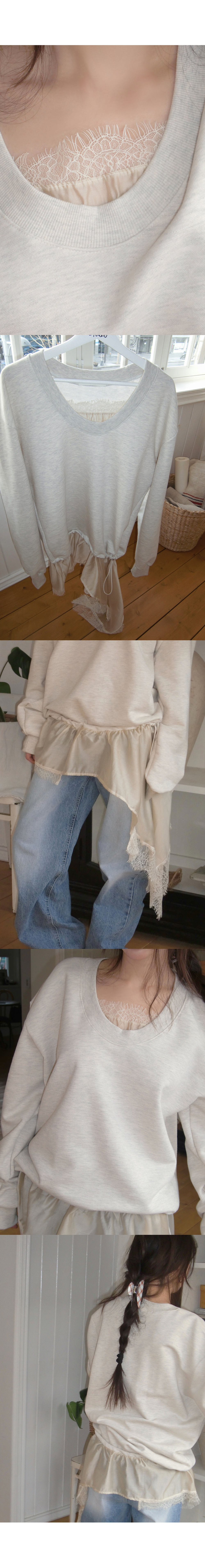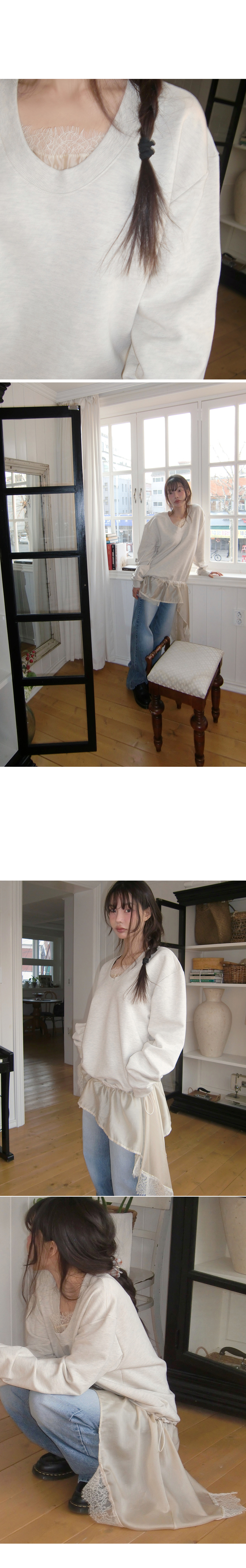 러블리한 무드의 레이스 레이어드 디자인의 투웨이 맨투맨