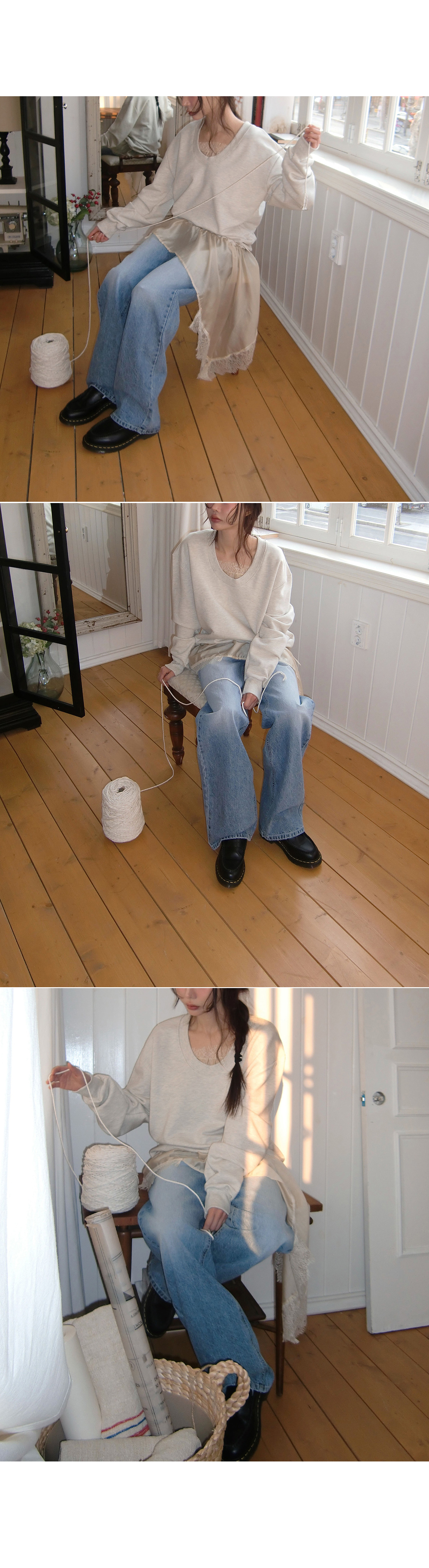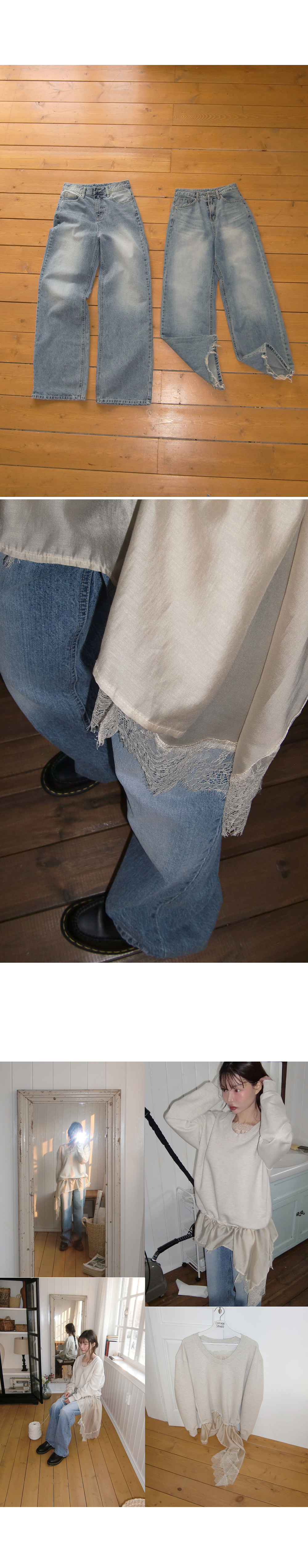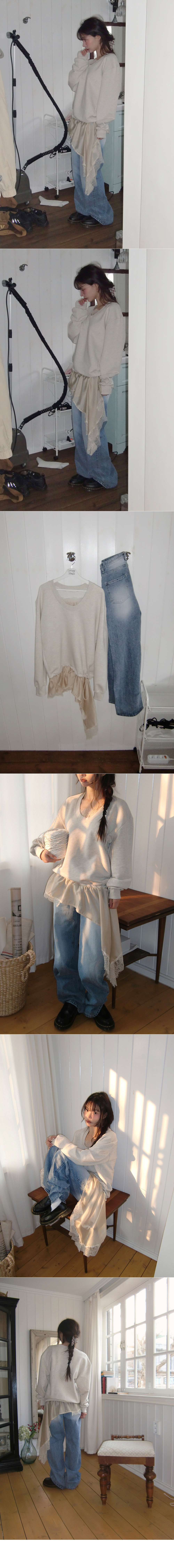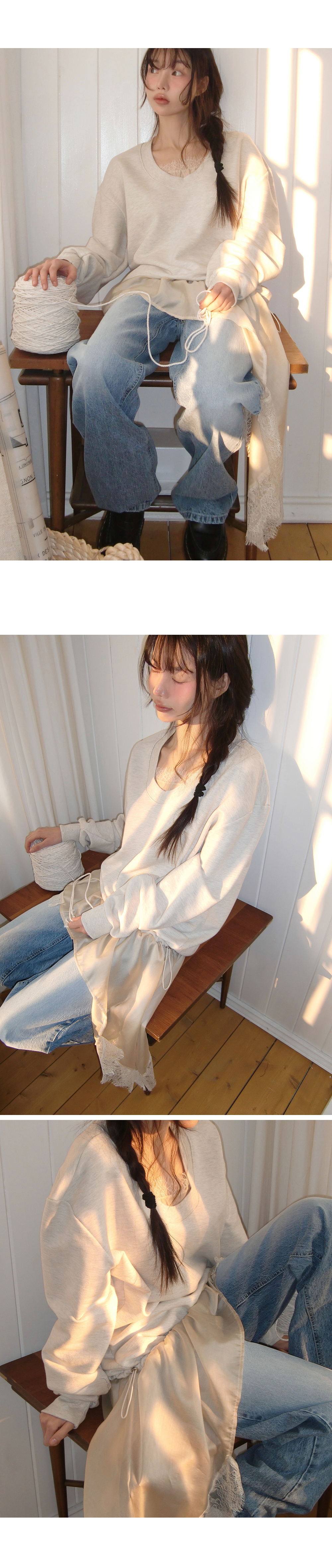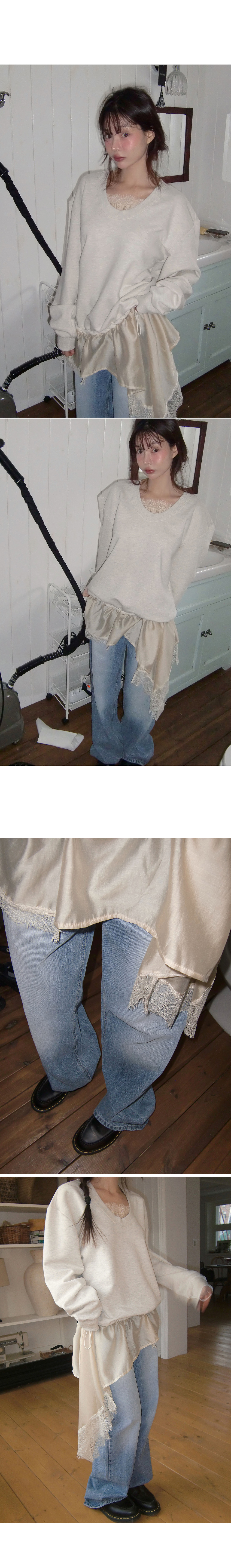 러블리한 무드의 레이스 레이어드 디자인의 투웨이 맨투맨
