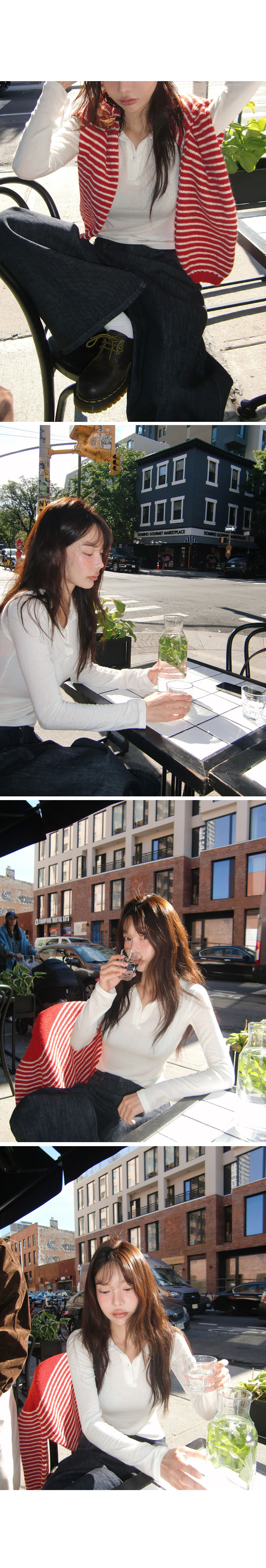 “골반은 평균이며 엉덩이가 작고 하의는 S사이즈를 입어요. 다리가 긴 편이라서 짧 은 기장감의 하의는 M사이즈도 입어요. 상의는 어깨가 있는 편이고 가슴사이즈는75C입니다.”