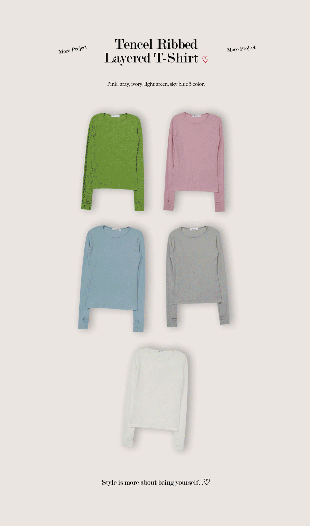 5가지 컬러로 보여드리는 모코프로젝트 핑거홀 티셔츠