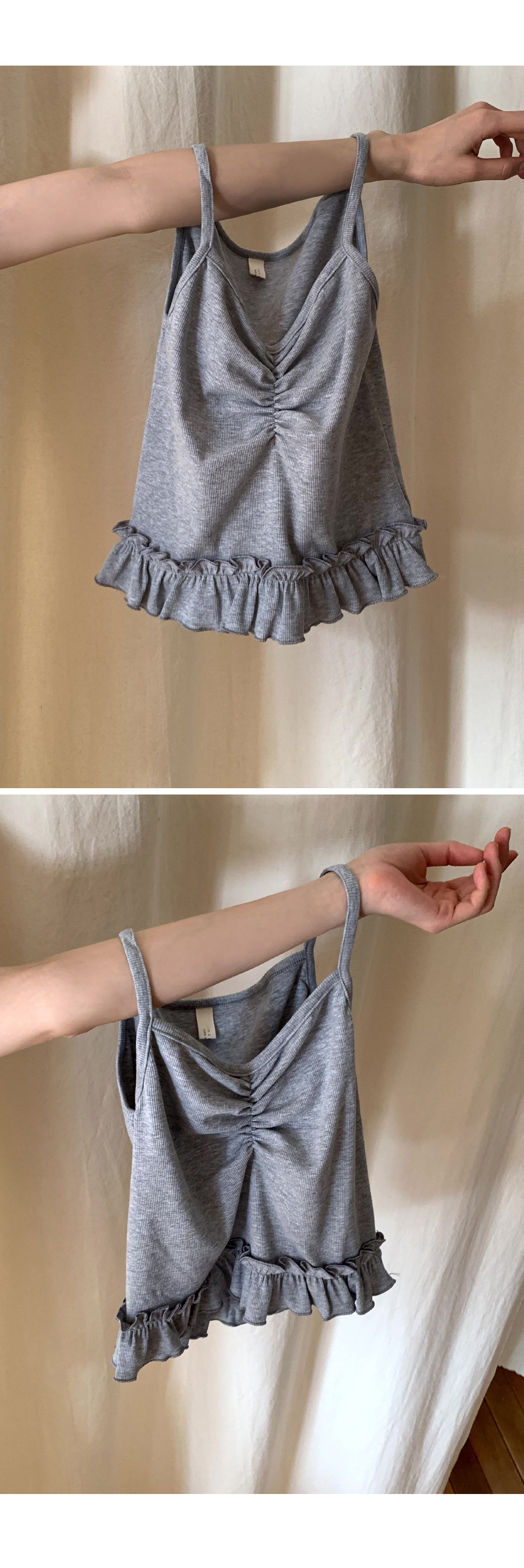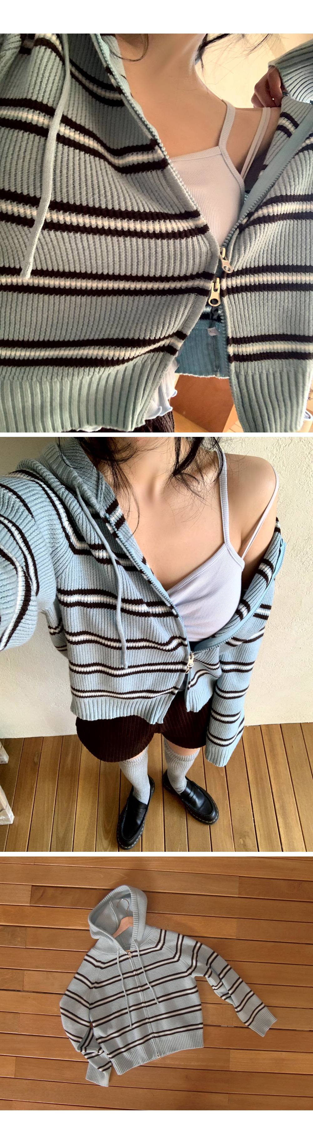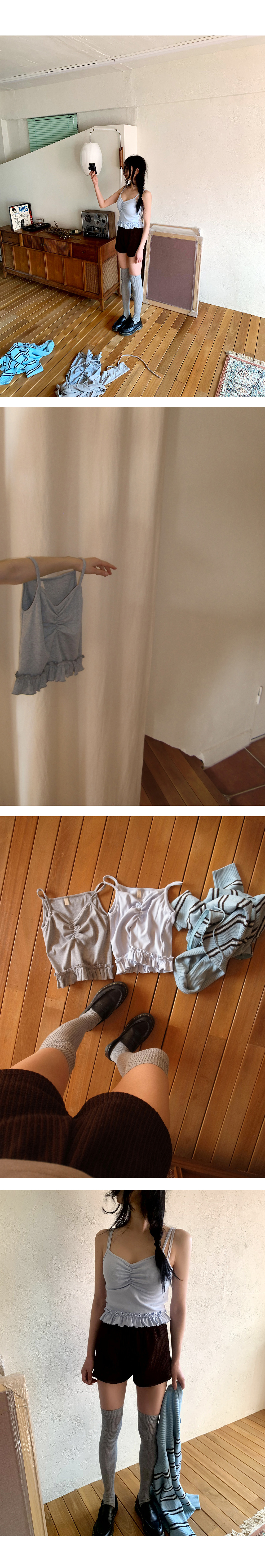 “골반은 평균이며 엉덩이가 작고 하의는 S사이즈를 입어요. 다리가 긴 편이라서 짧 은 기장감의 하의는 M사이즈도 입어요. 상의는 어깨가 있는 편이고 가슴사이즈는75C입니다.”