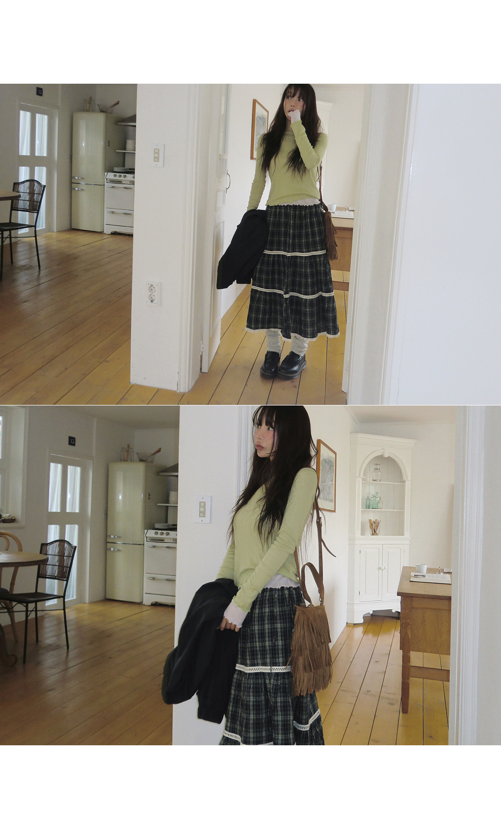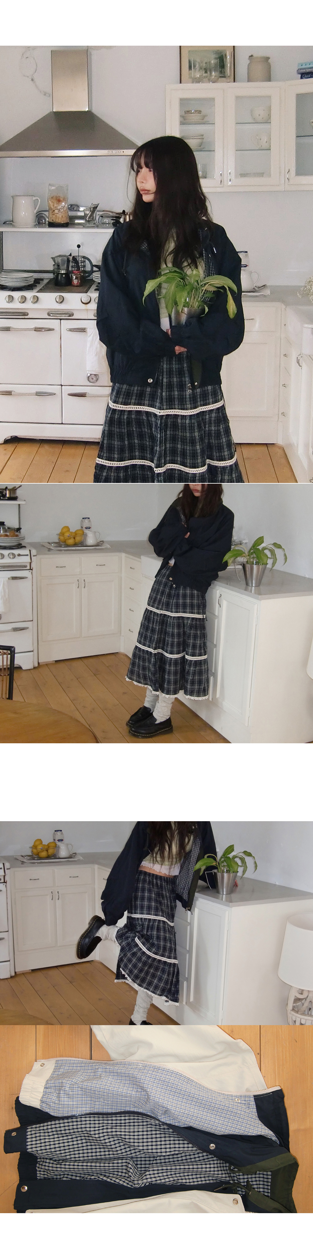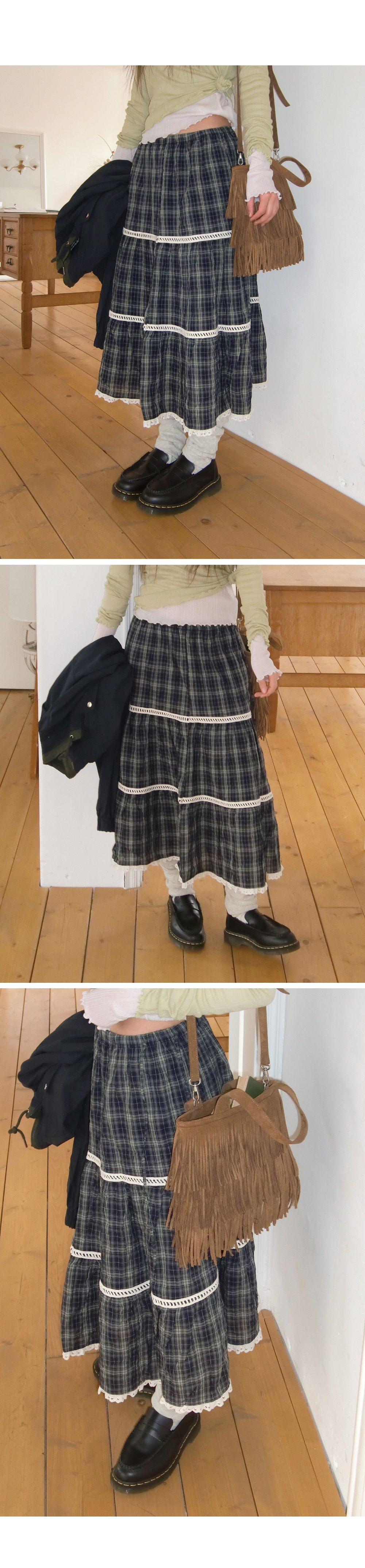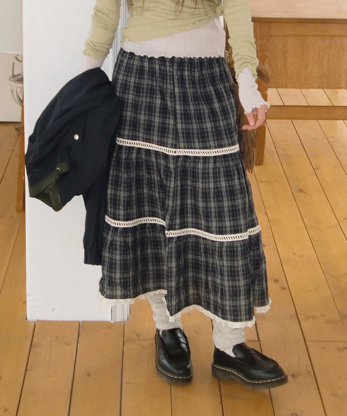 # 빈티지한 무드의 캉캉 체크 롱스커트