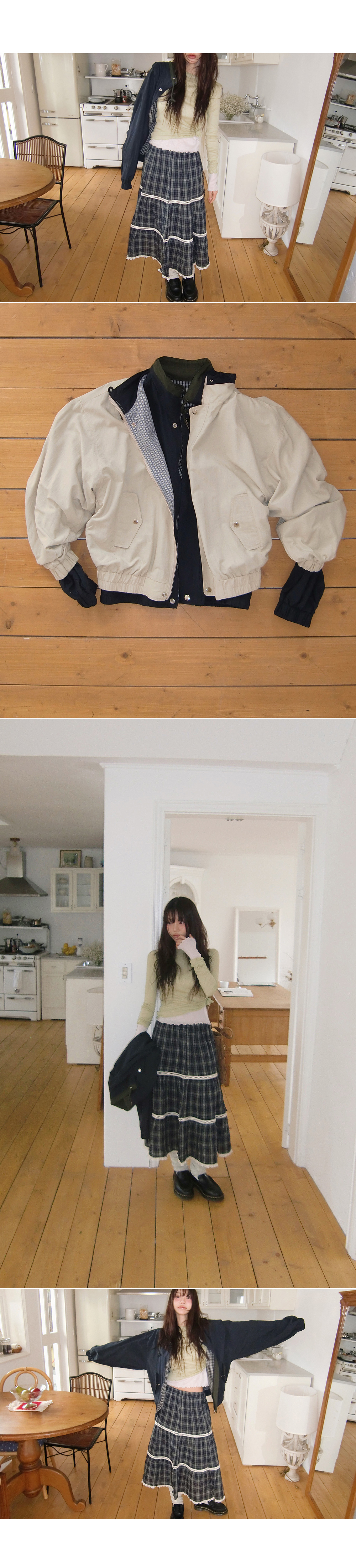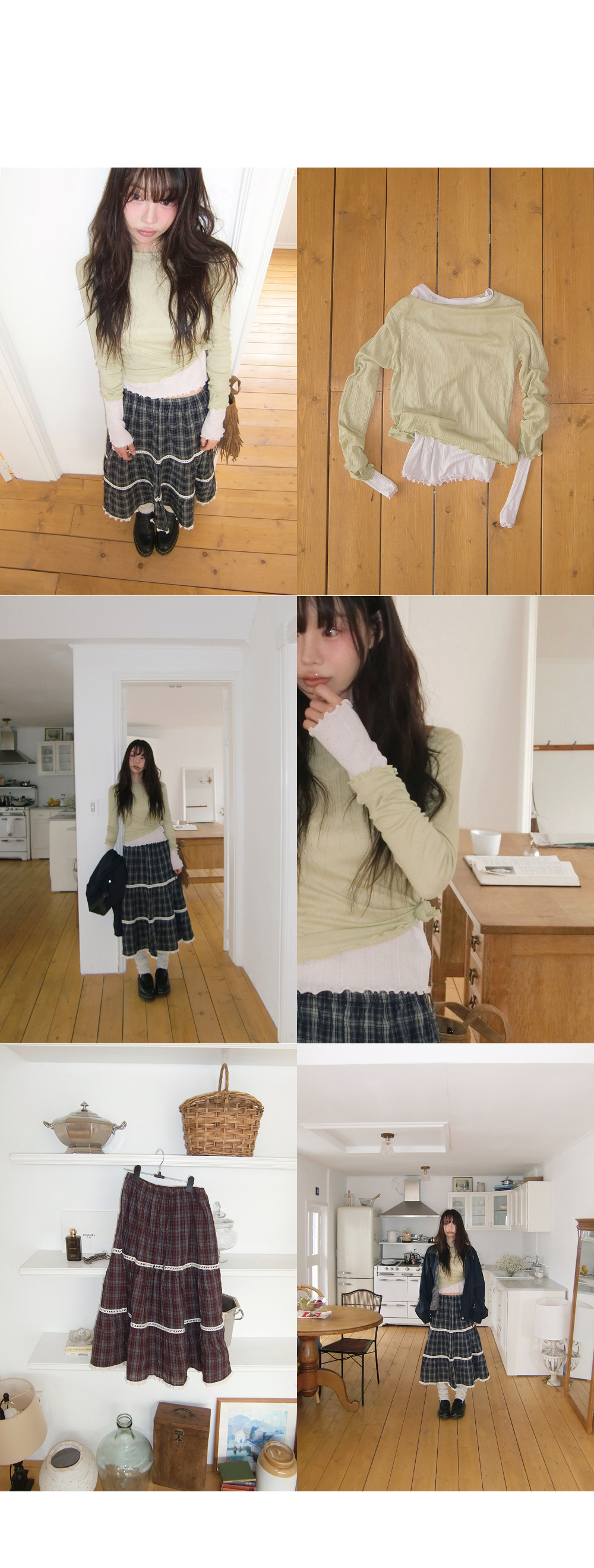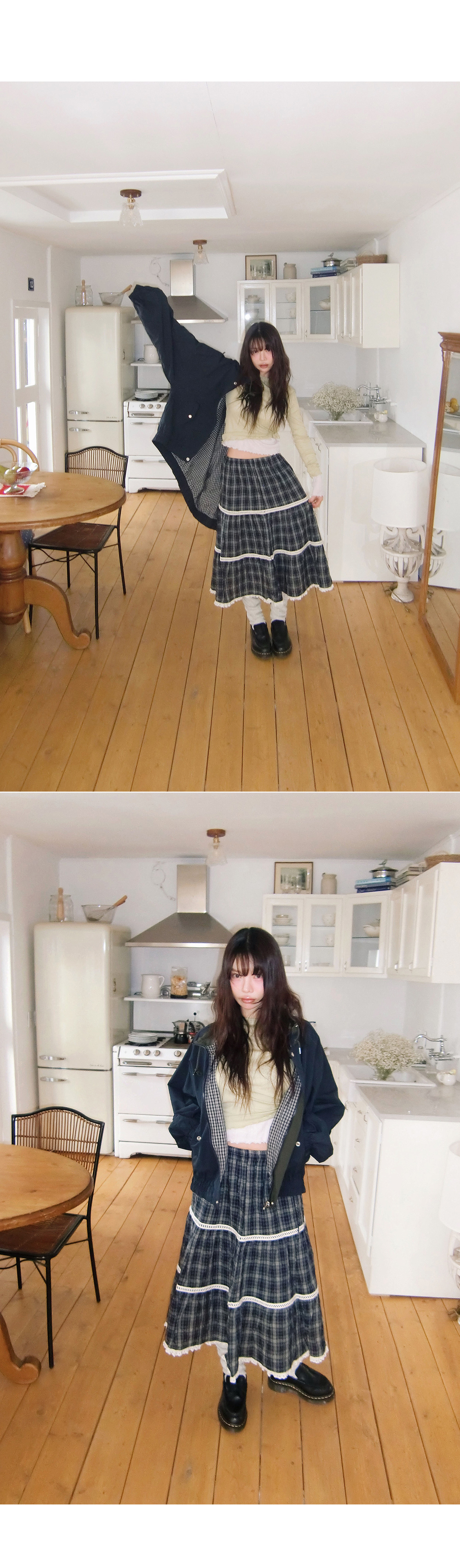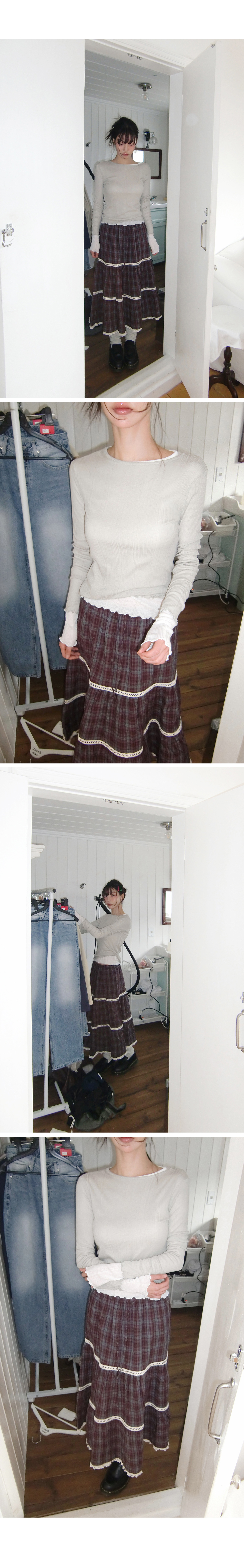 # 빈티지한 무드의 캉캉 체크 롱스커트