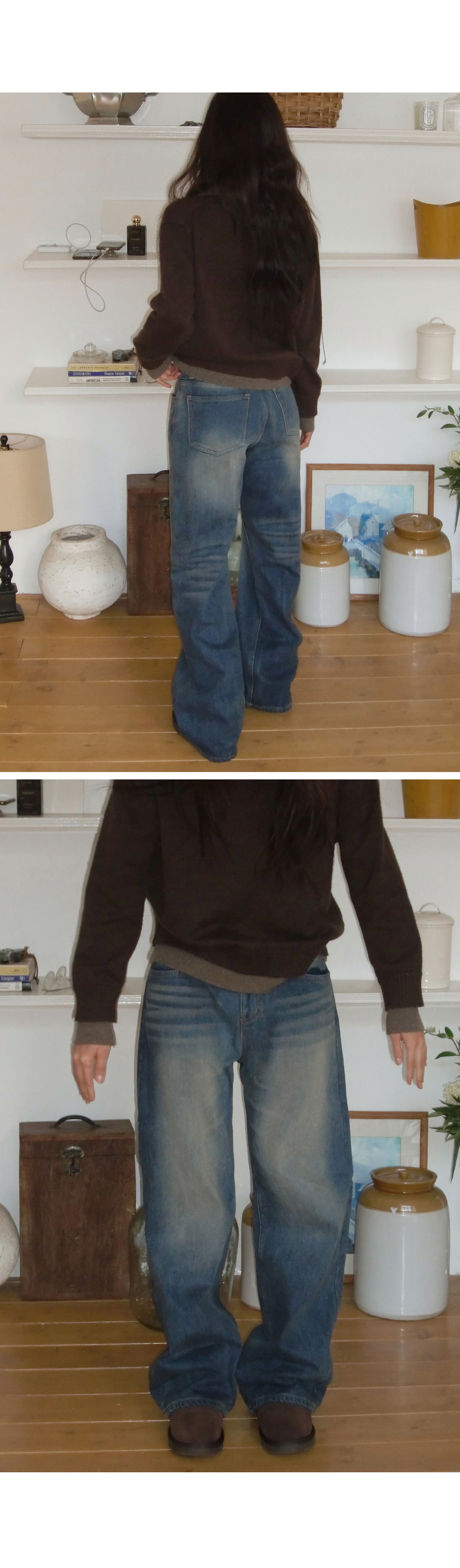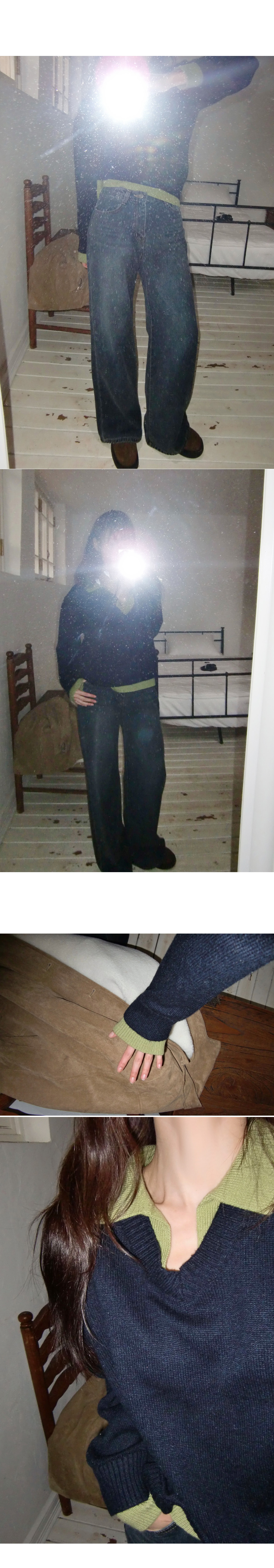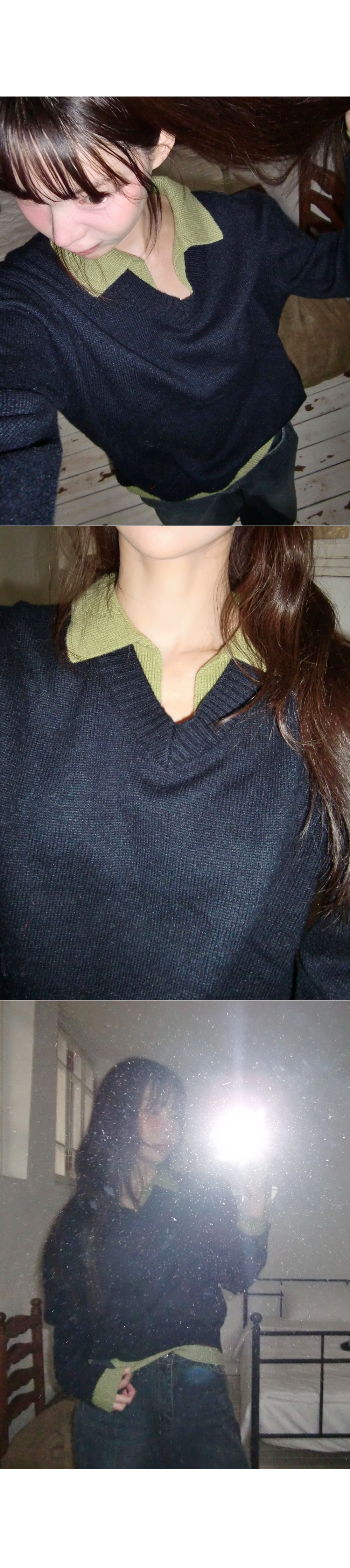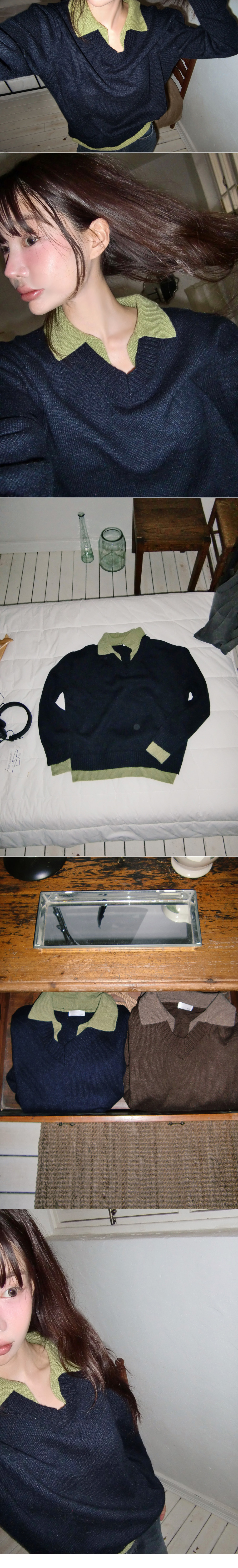 # 배색 카라 디테일의 브이넥 레이어드 니트
