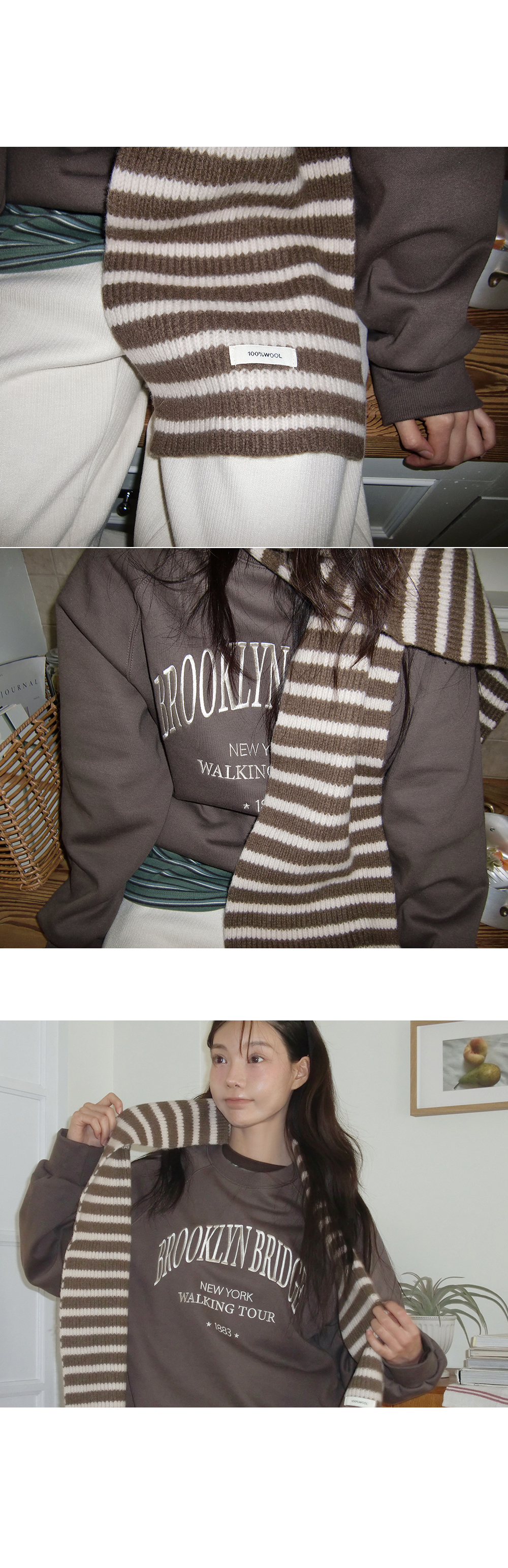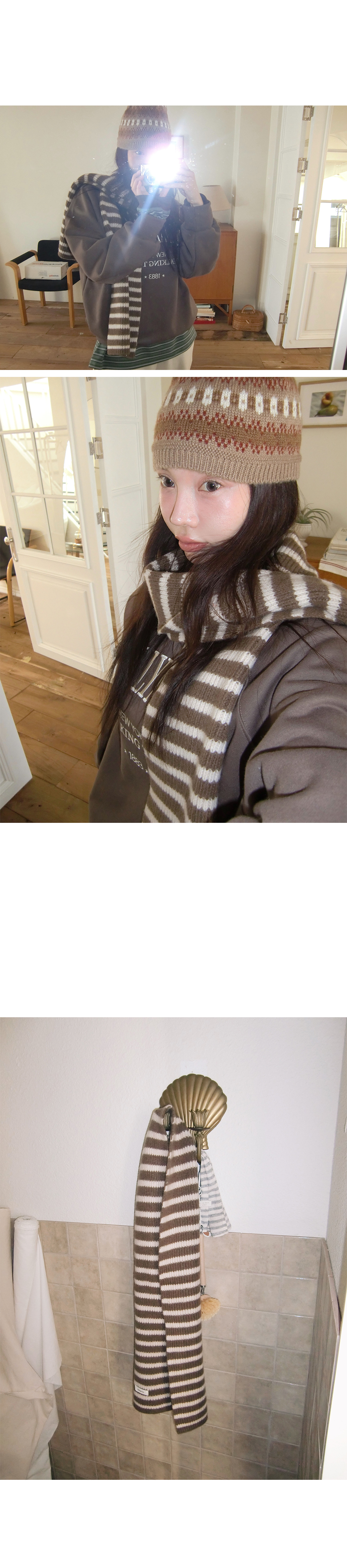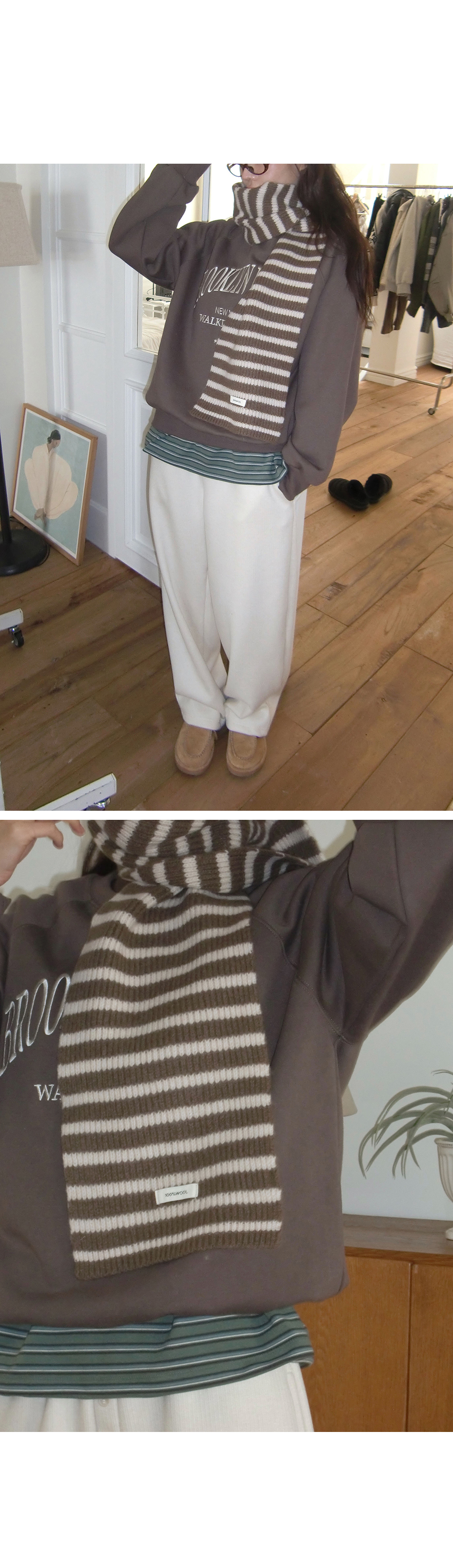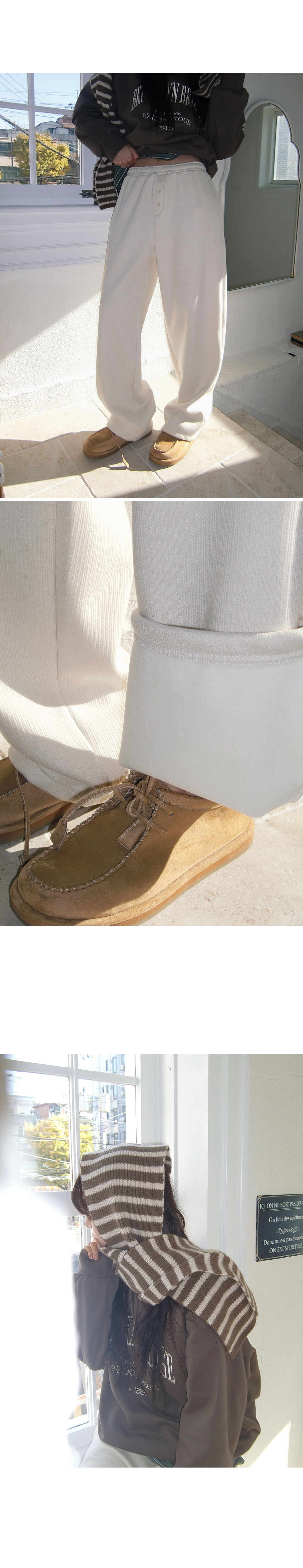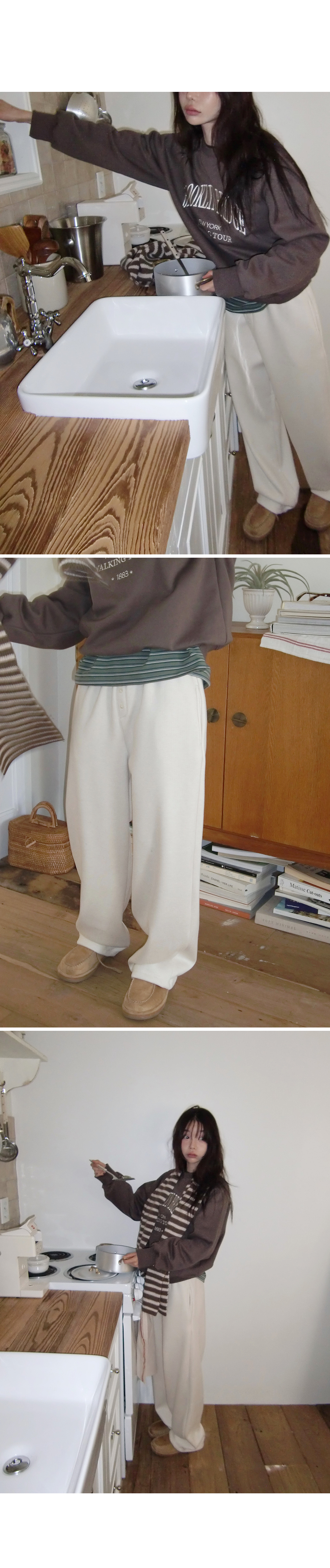 “골반은 평균이며 엉덩이가 작고 하의는 S사이즈를 입어요. 다리가 긴 편이라서 짧 은 기장감의 하의는 M사이즈도 입어요. 상의는 어깨가 있는 편이고 가슴사이즈는75C입니다.”