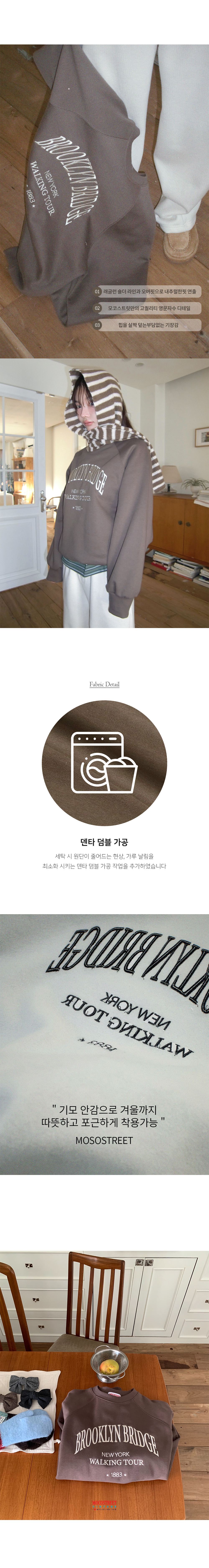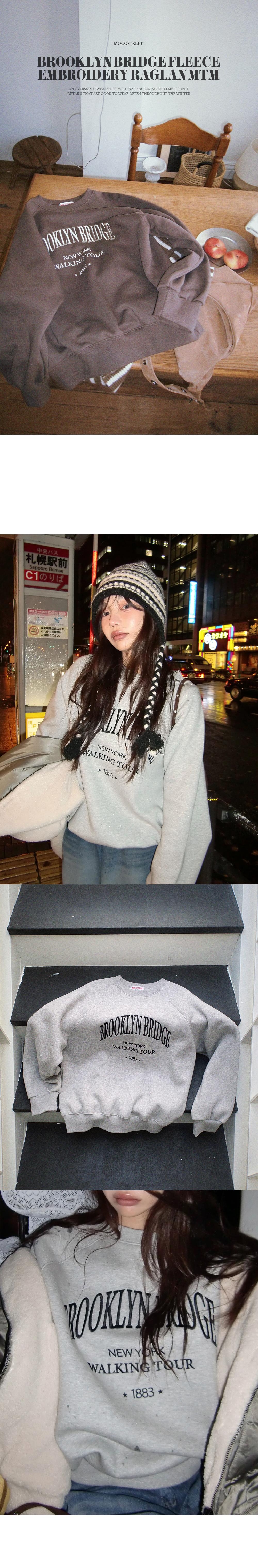 하이퀄리티 영문 자수와 부드러운 속기모 원단의 모코스트릿 오버핏 래글런 맨투맨!
