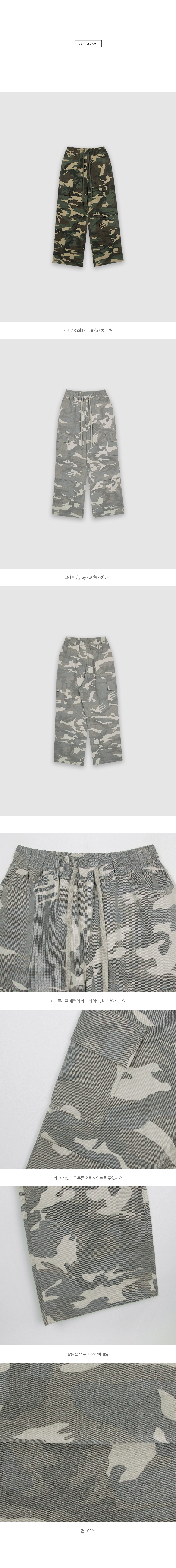 카모플라쥬 패턴에 포켓과 핀턱으로 포인트를 준 밴딩 팬츠