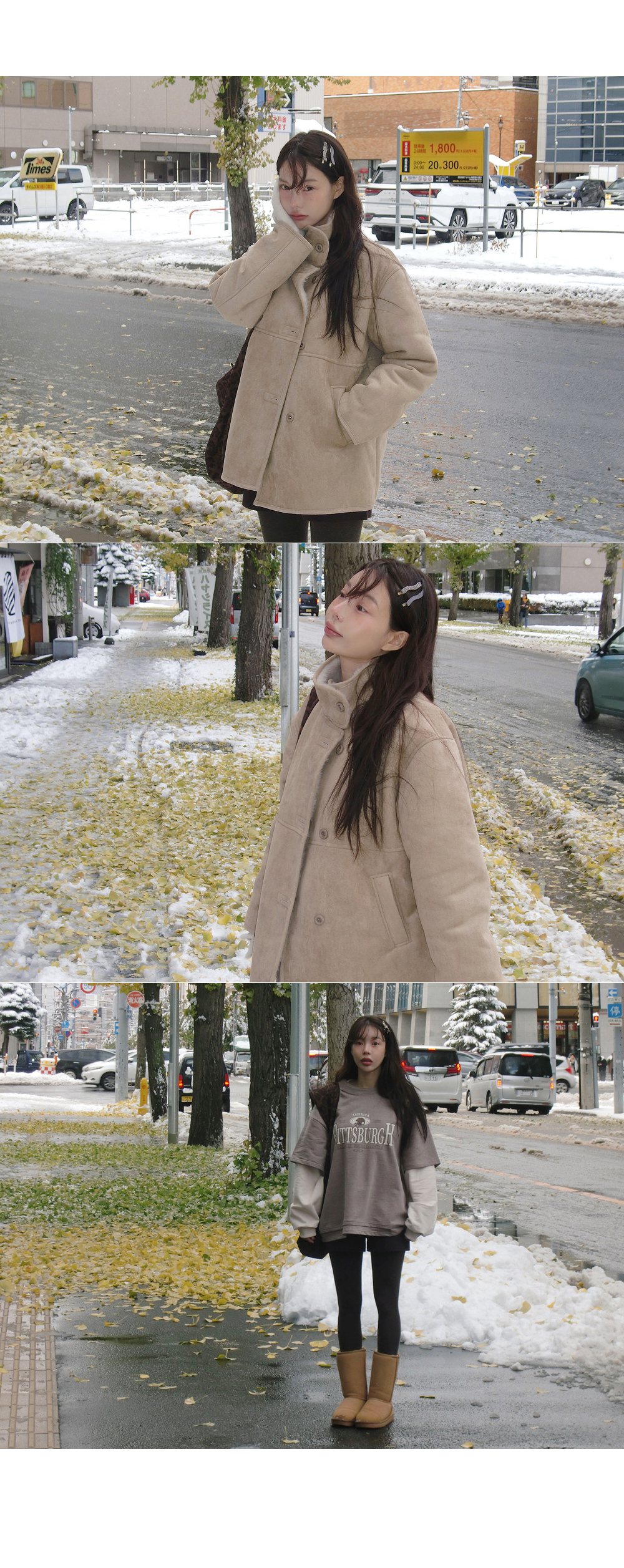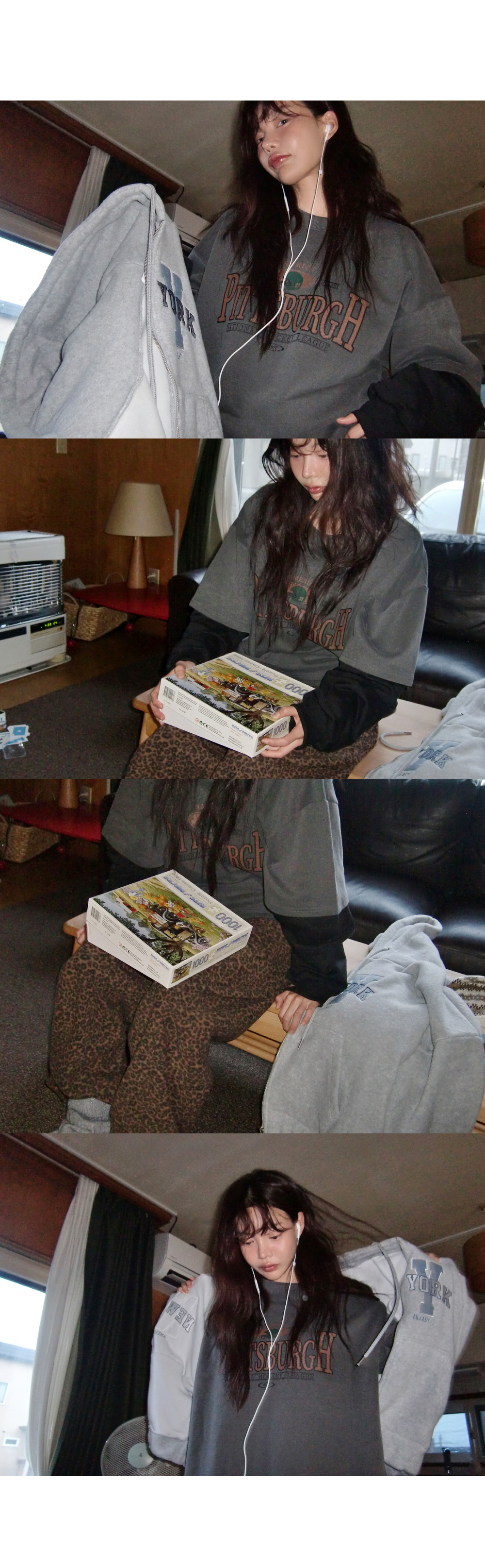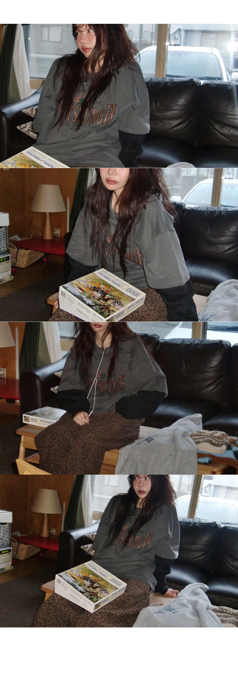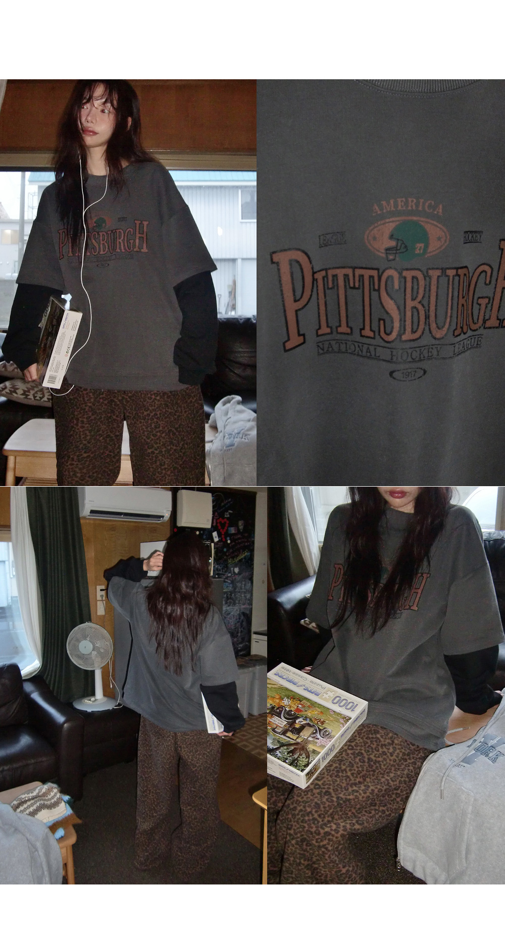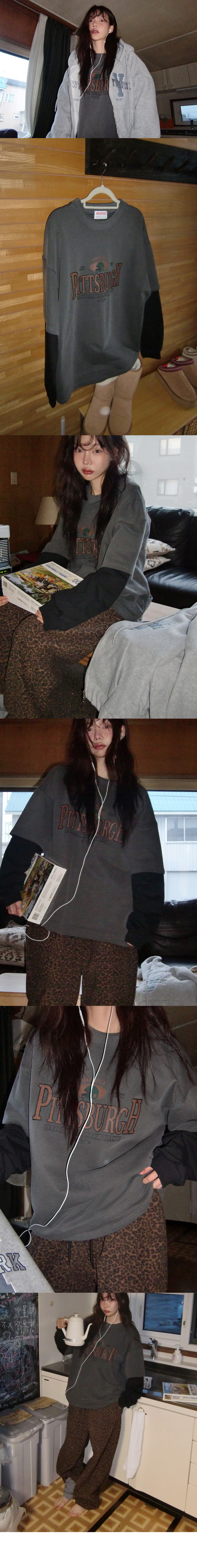 크랙 나염과 더블 레이어드 디테일의 모코스트릿 오버핏 티셔츠