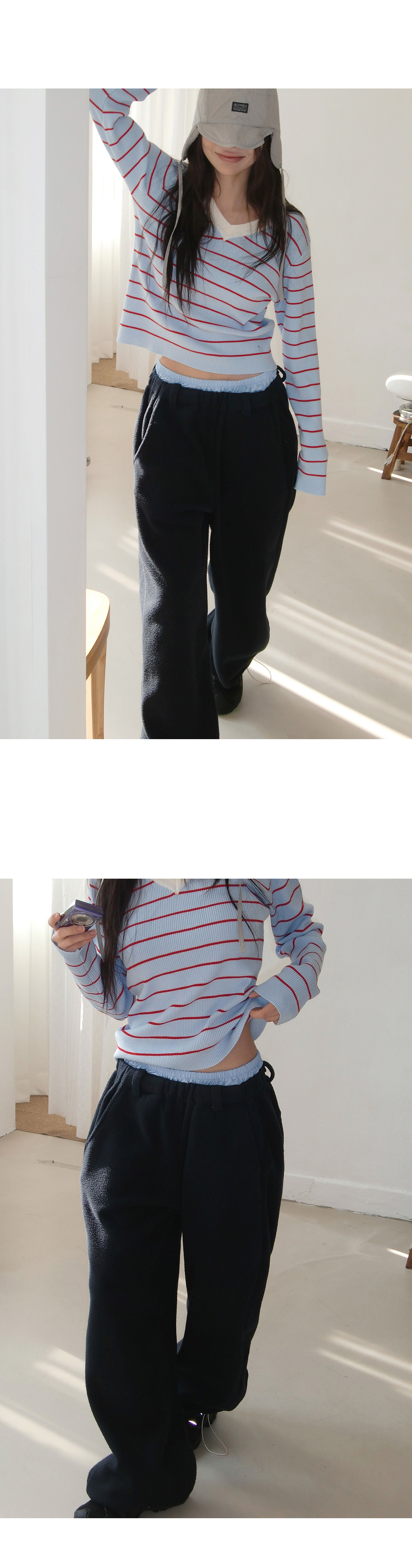 겹쳐 입은 듯한 배색 이중 밴딩 디자인으로 부담없이 힙하게 즐기기 좋은 플리스 밴딩 와이드 팬츠
