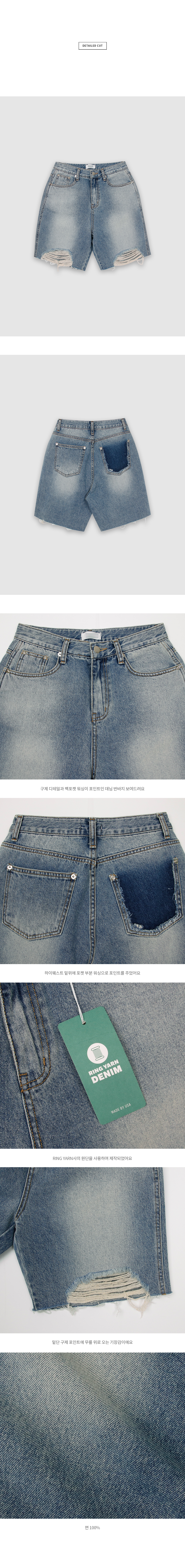 구제 디테일과 백포켓 워싱이 포인트인 데님 반바지