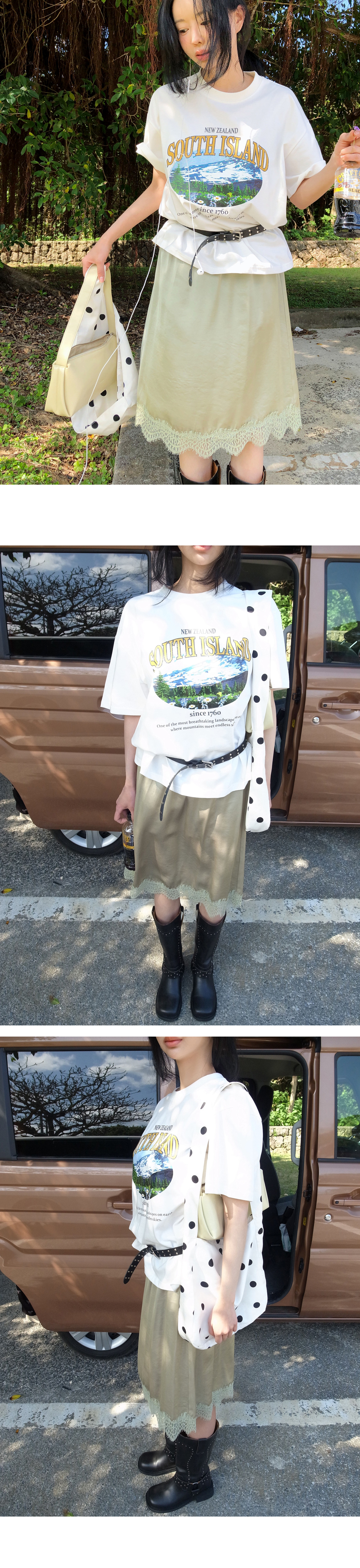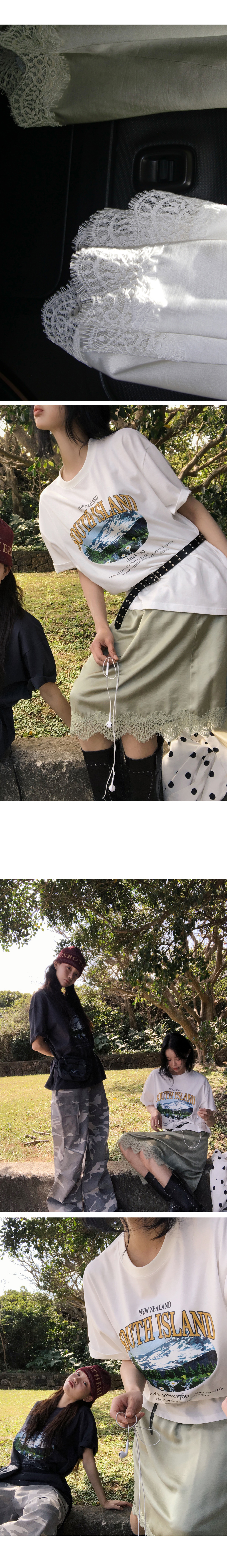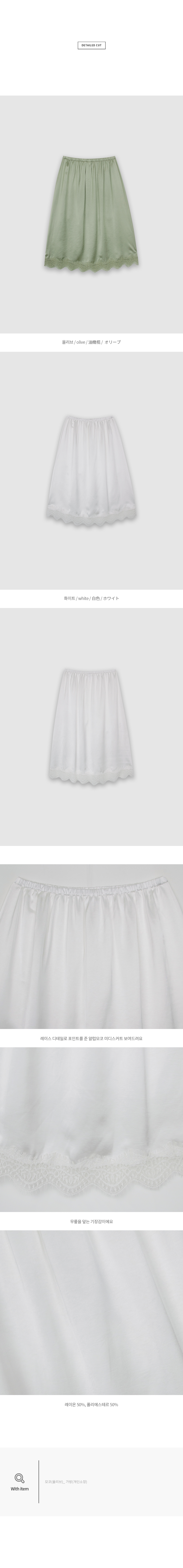 레이스 디테일로 포인트를 준 알럽모코 미디스커트