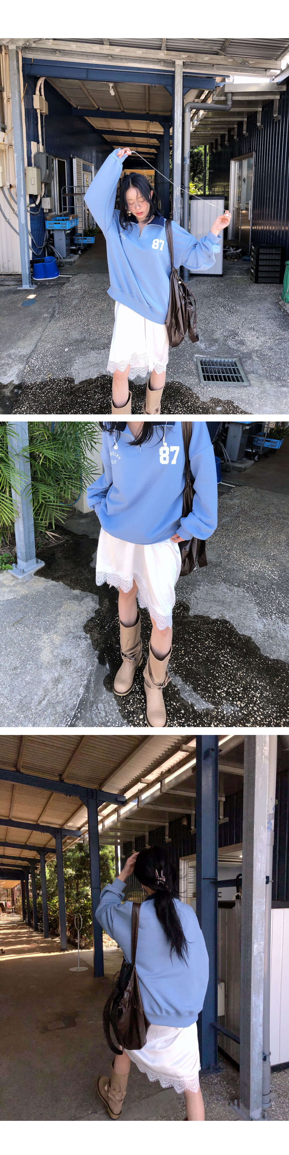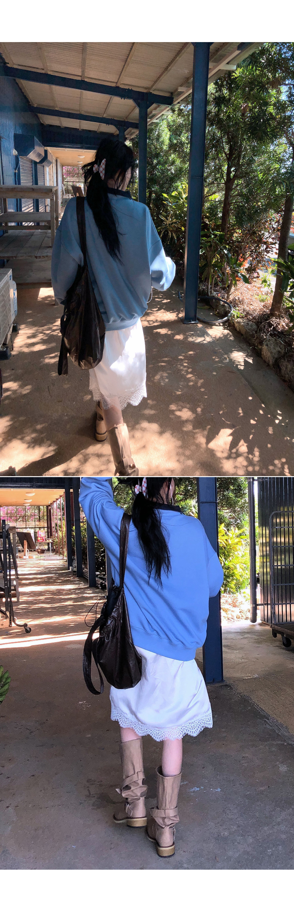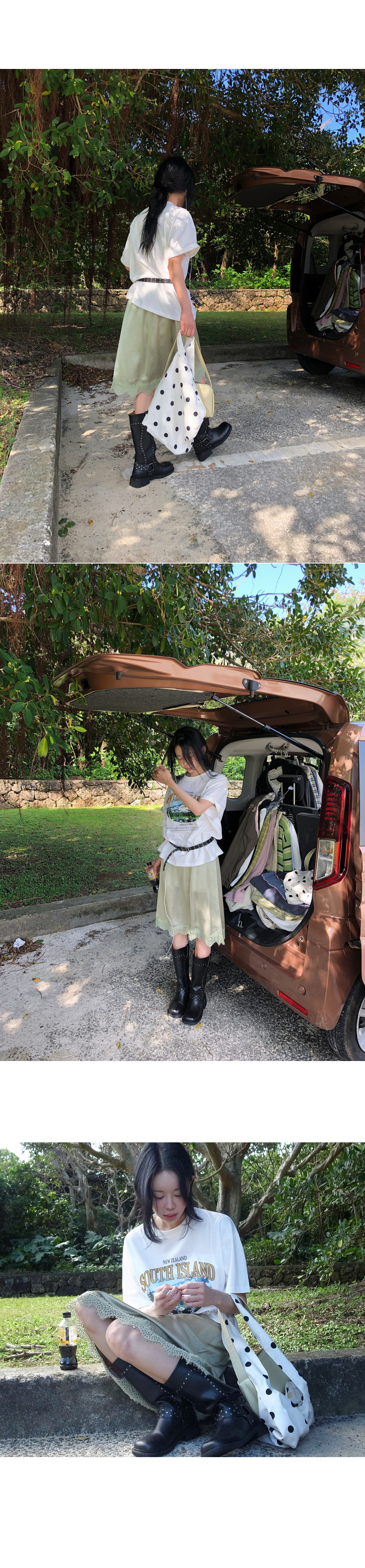 레이스 디테일로 포인트를 준 알럽모코 미디스커트