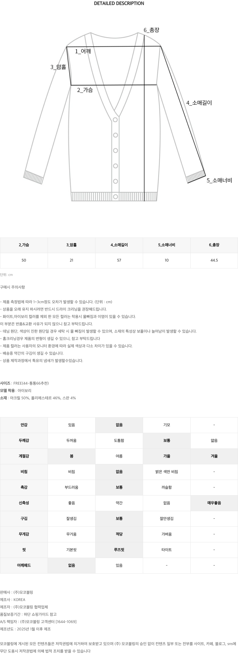 소매 꽈배기 짜임, 원버튼 등 심플하고 베이직한 디테일의 스탠다드핏 가디건