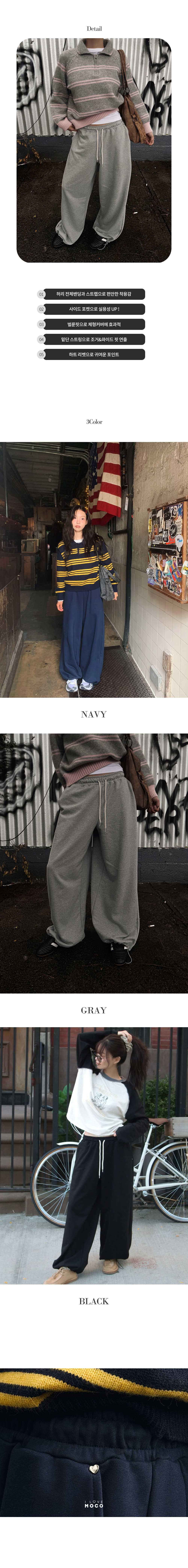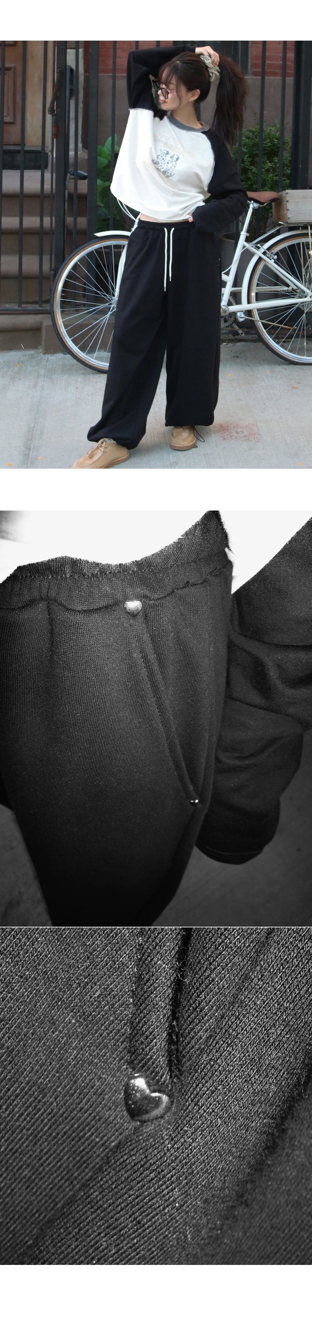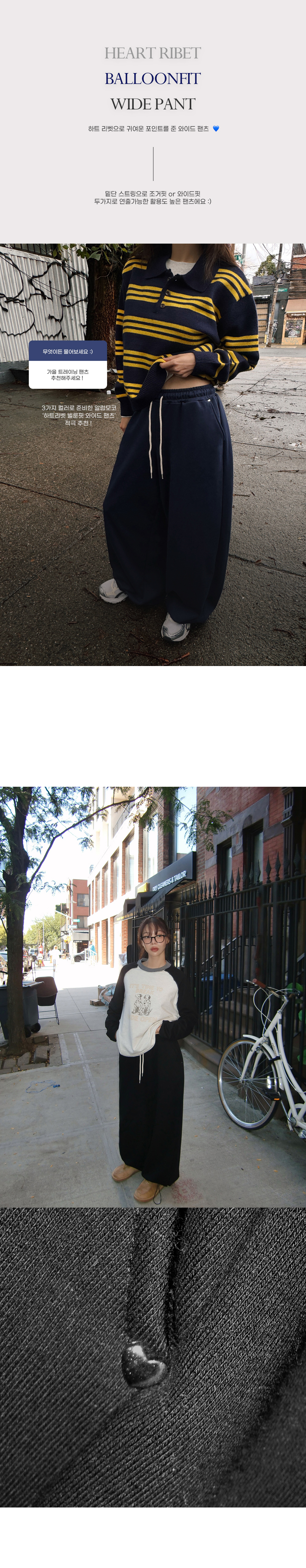 하트리벳으로 포인트를 준 벌룬&핀턱 디자인의 오버핏 스웻팬츠. 어디에나 편안하게 멋스럽게 입기 좋은 데일리 아이템!