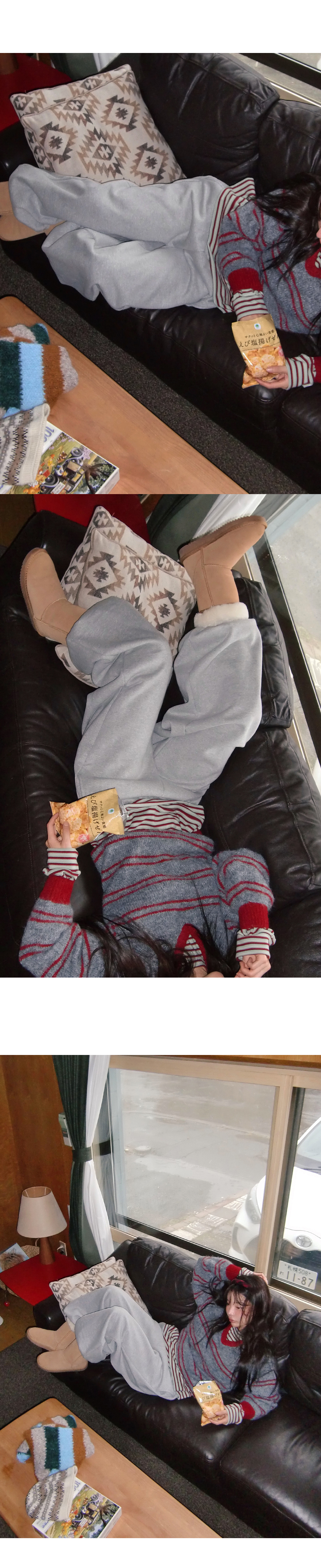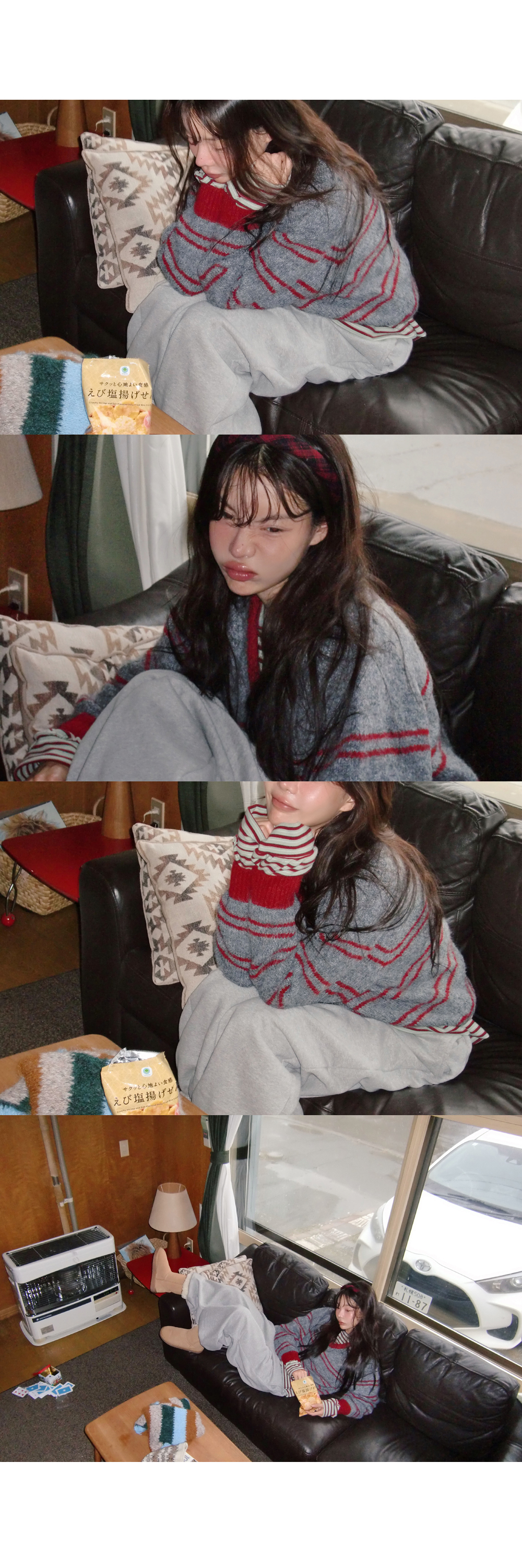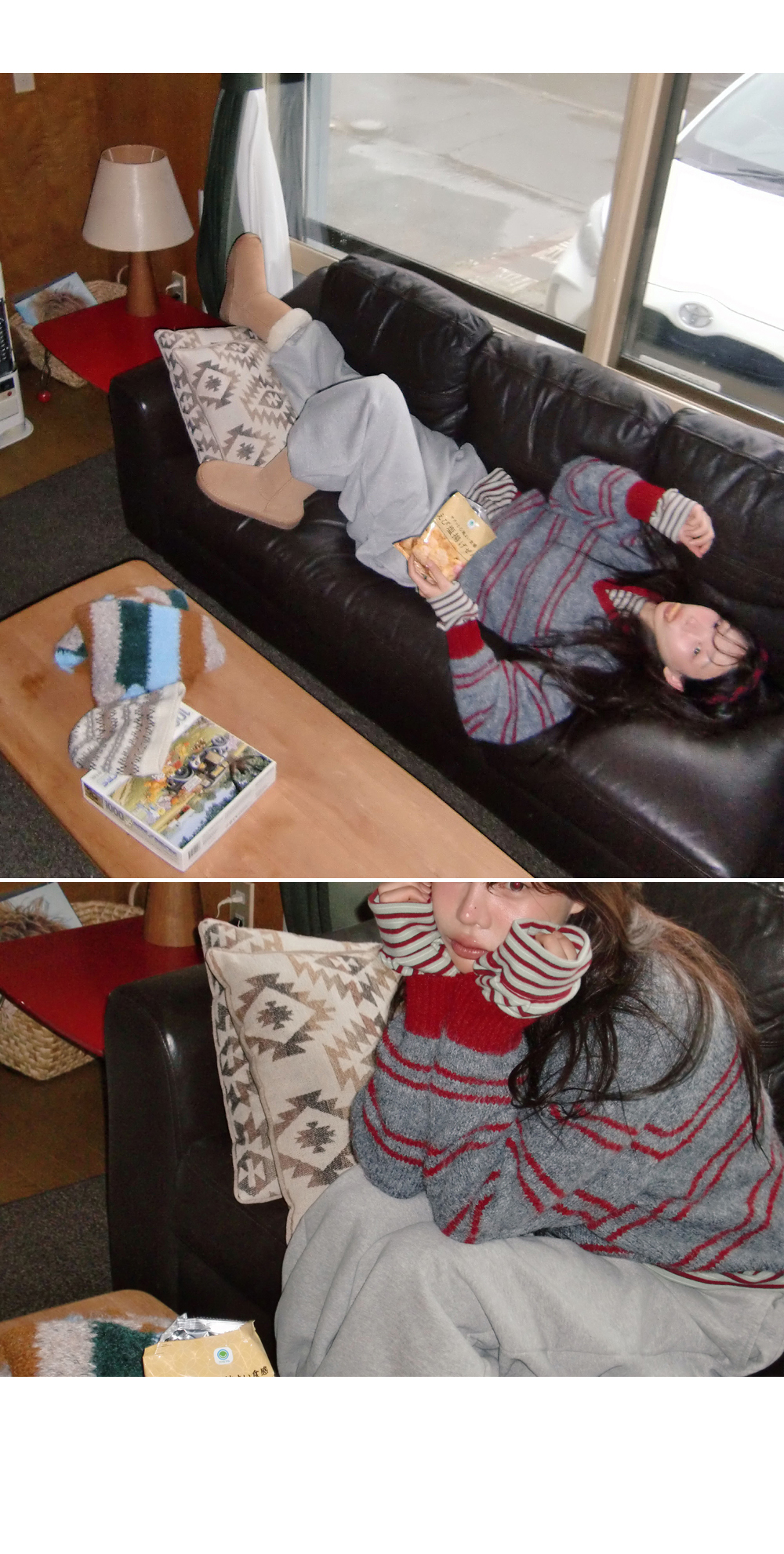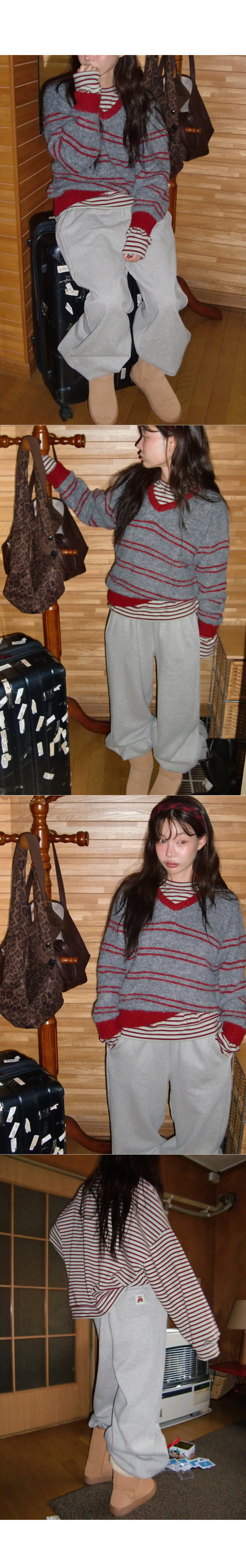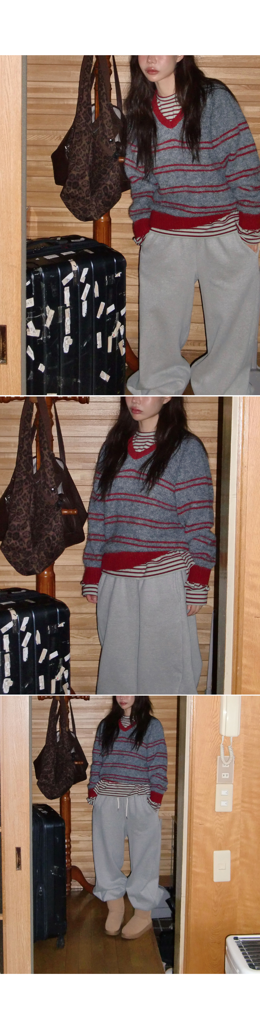 헤어감이 느껴지는 배색 단가라 브이넥 니트