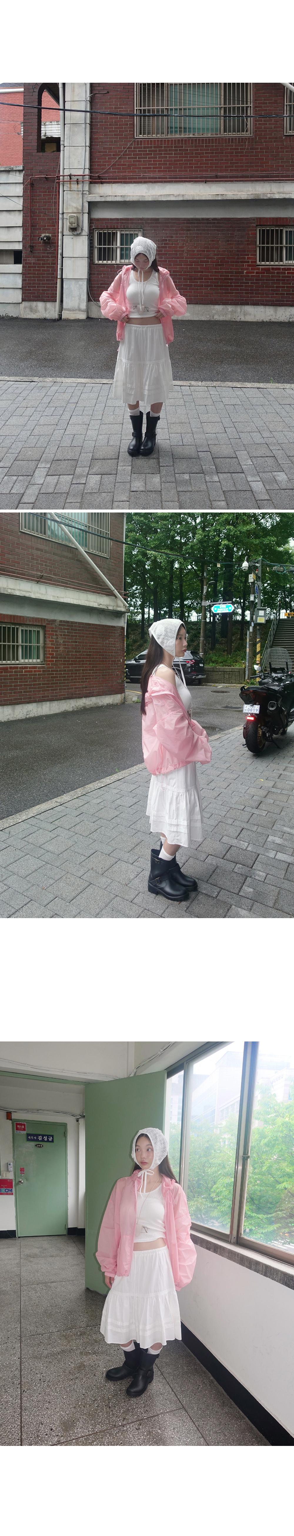 “골반은 평균이며 엉덩이가 작고 하의는 S사이즈를 입어요. 다리가 긴 편이라서 짧 은 기장감의 하의는 M사이즈도 입어요. 상의는 어깨가 있는 편이고 가슴사이즈는75C입니다.”