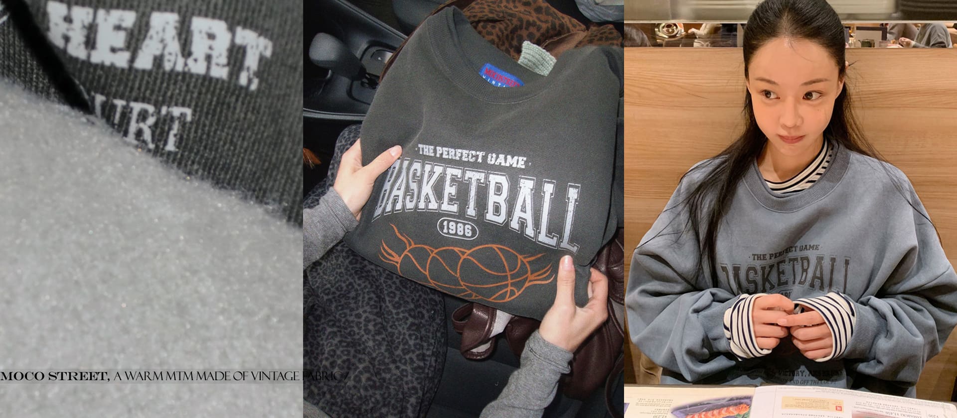 빈티지한 피그원단의 기모 맨투맨! 모코스트릿만의 독보적인 무드!