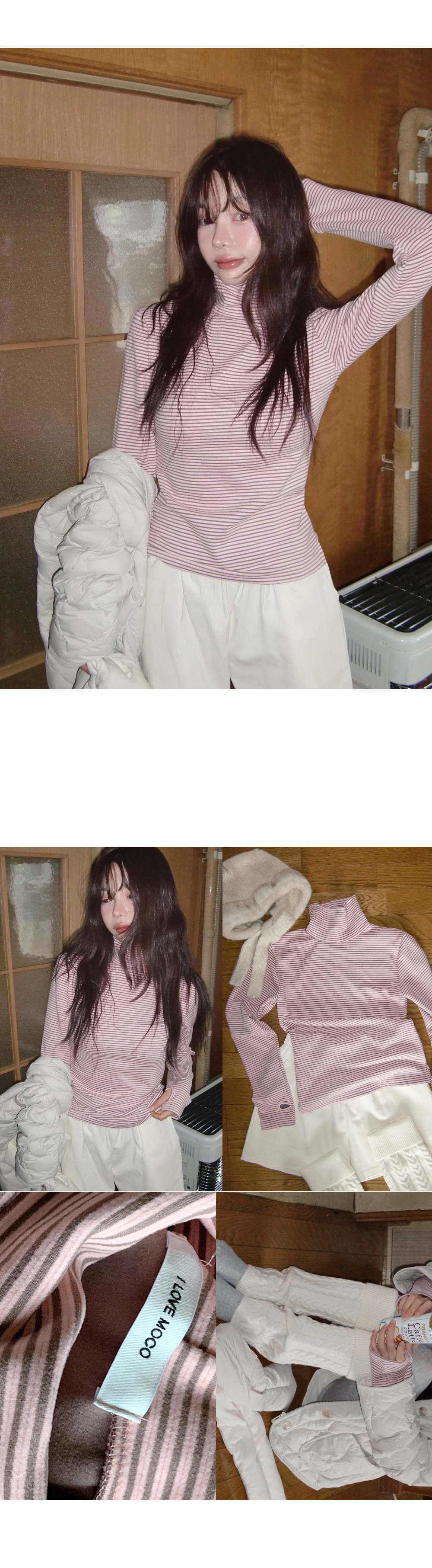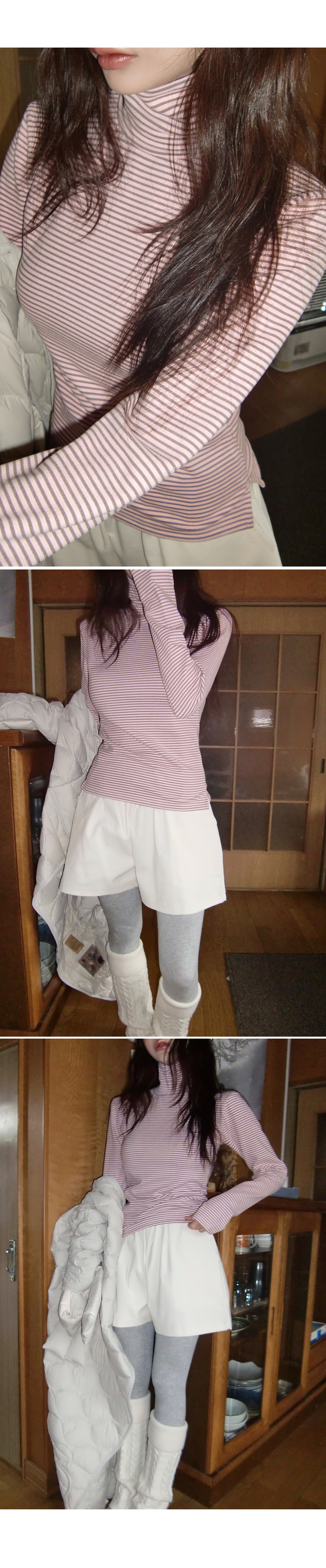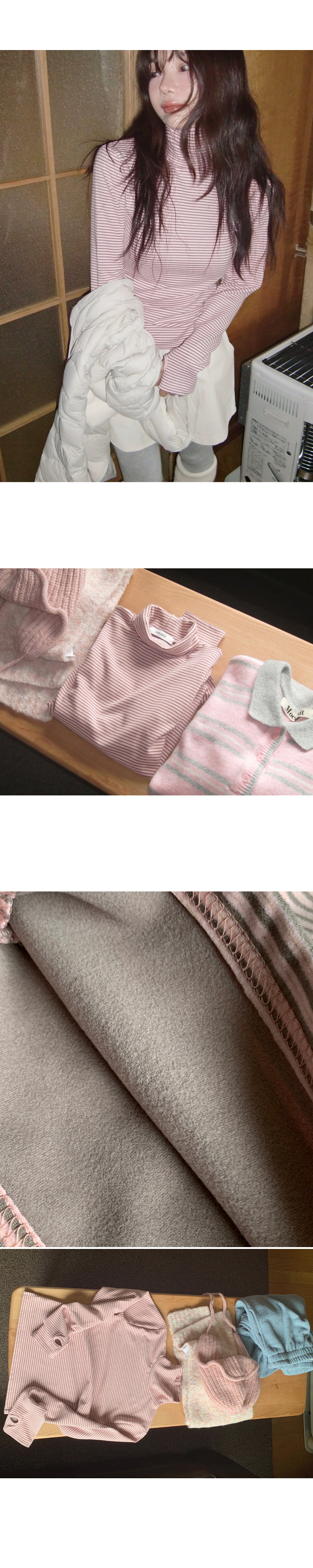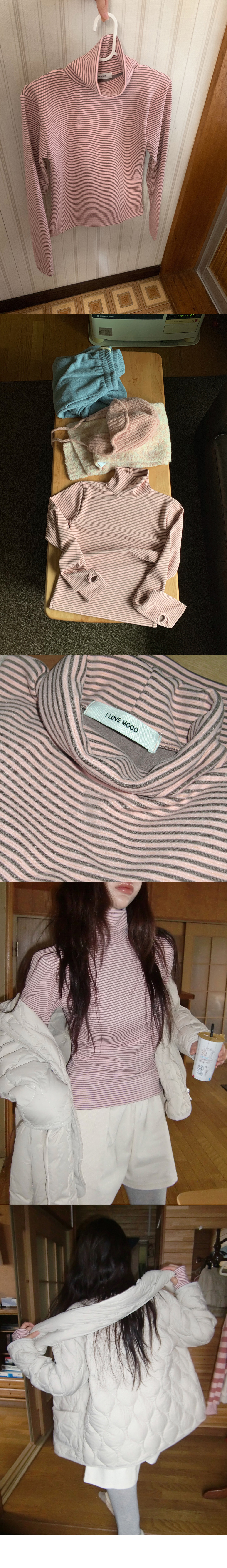 “골반은 평균이며 엉덩이가 작고 하의는 S사이즈를 입어요. 다리가 긴 편이라서 짧 은 기장감의 하의는 M사이즈도 입어요. 상의는 어깨가 있는 편이고 가슴사이즈는75C입니다.”