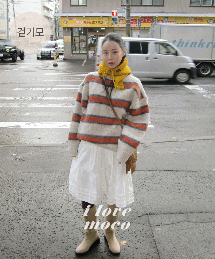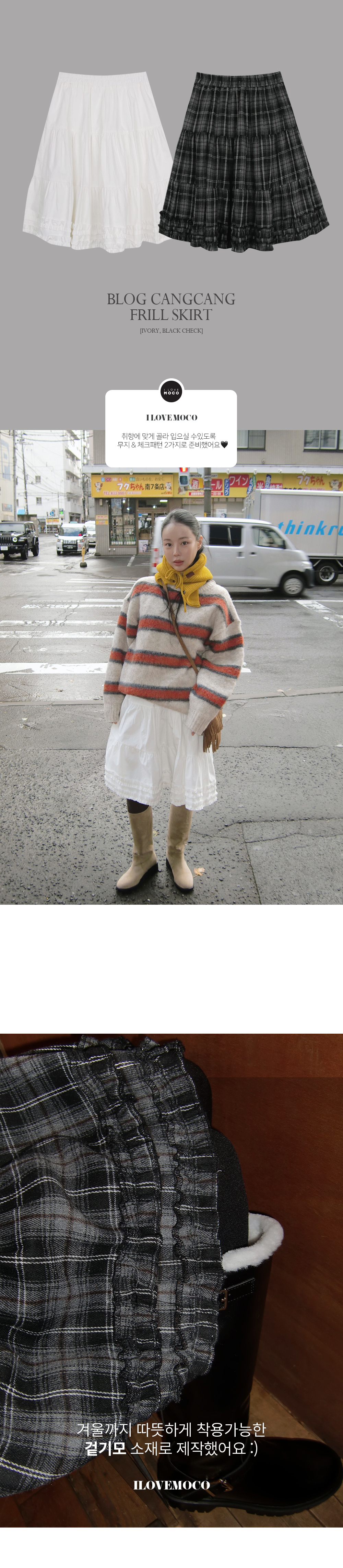 무지와 체크패턴 2가지로 준비한 빈티지한 무드의 알럽모코 프릴 캉캉 스커트