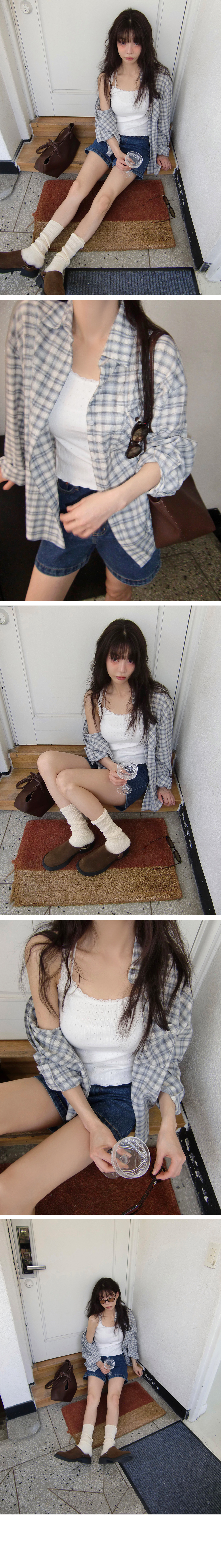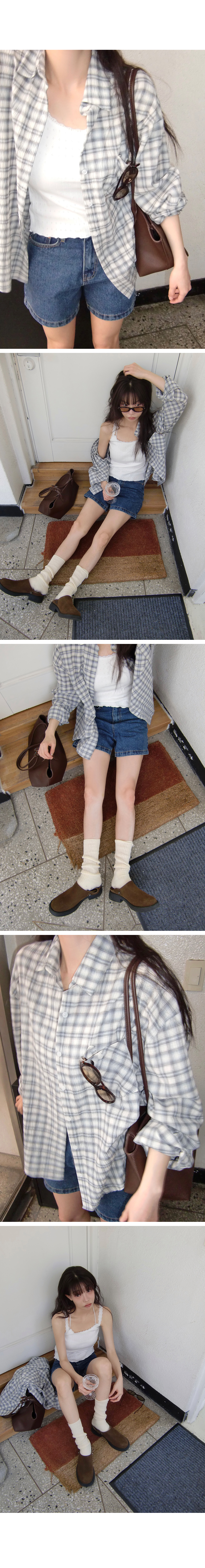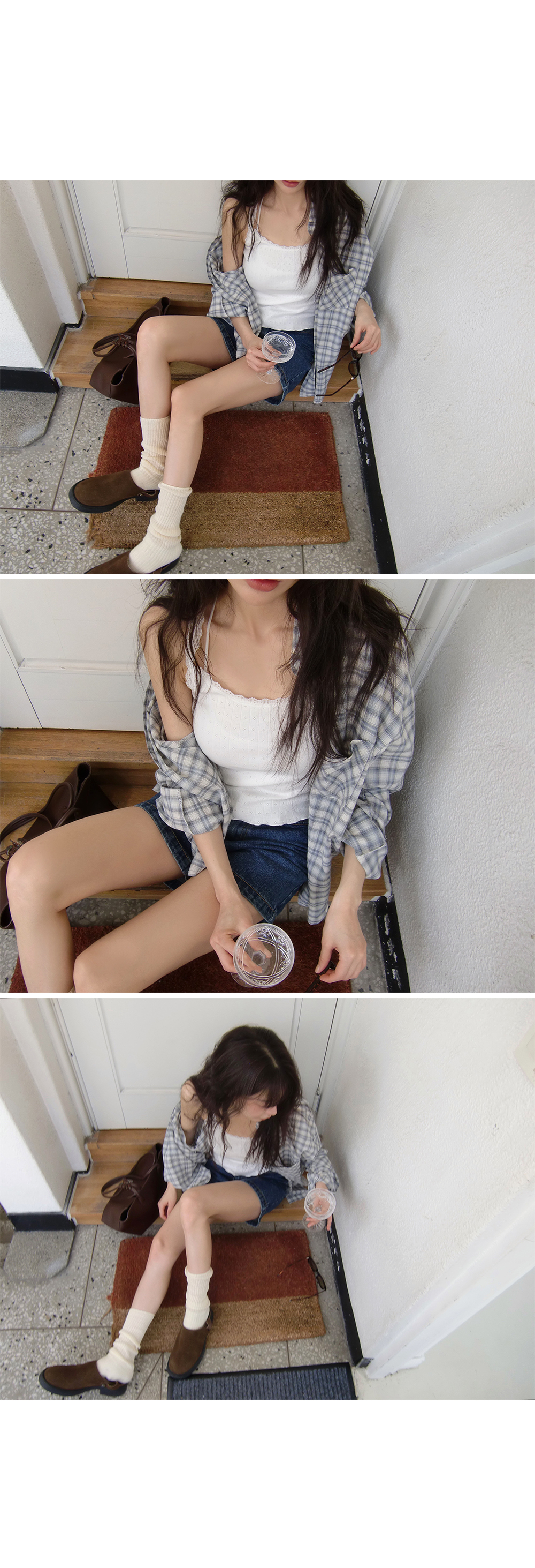 “골반은 평균이며 엉덩이가 작고 하의는 S사이즈를 입어요. 다리가 긴 편이라서 짧 은 기장감의 하의는 M사이즈도 입어요. 상의는 어깨가 있는 편이고 가슴사이즈는75C입니다.”