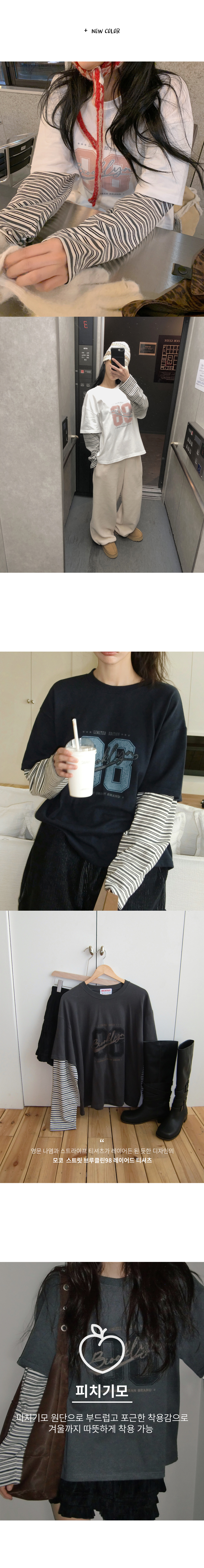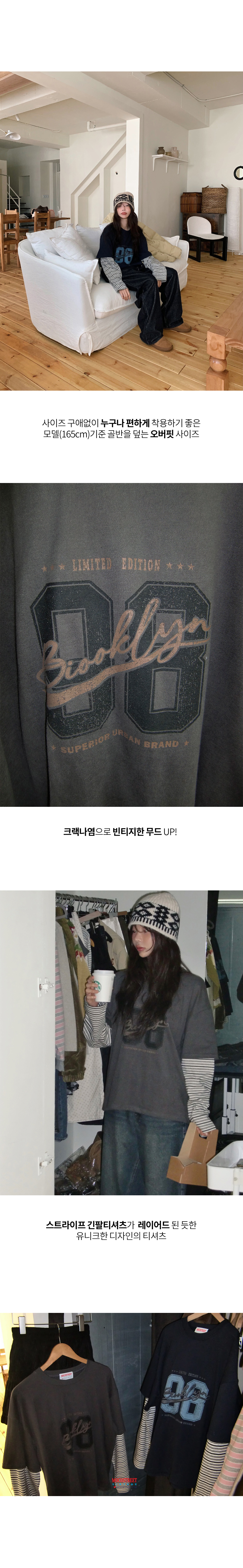 (컬러추가)레이어드 소매로 포인트를 준 모코스트릿의 크랙 영문 나염 티셔츠
