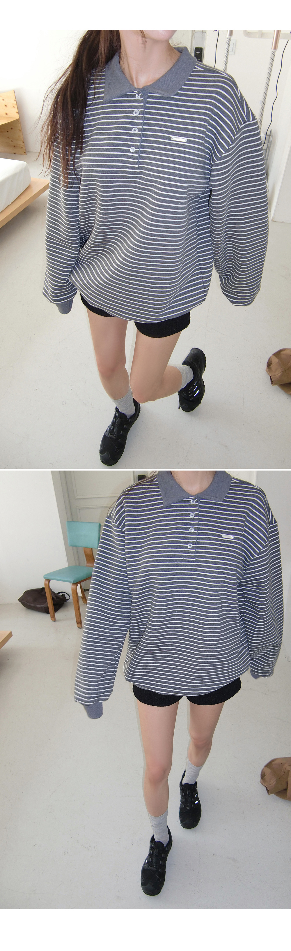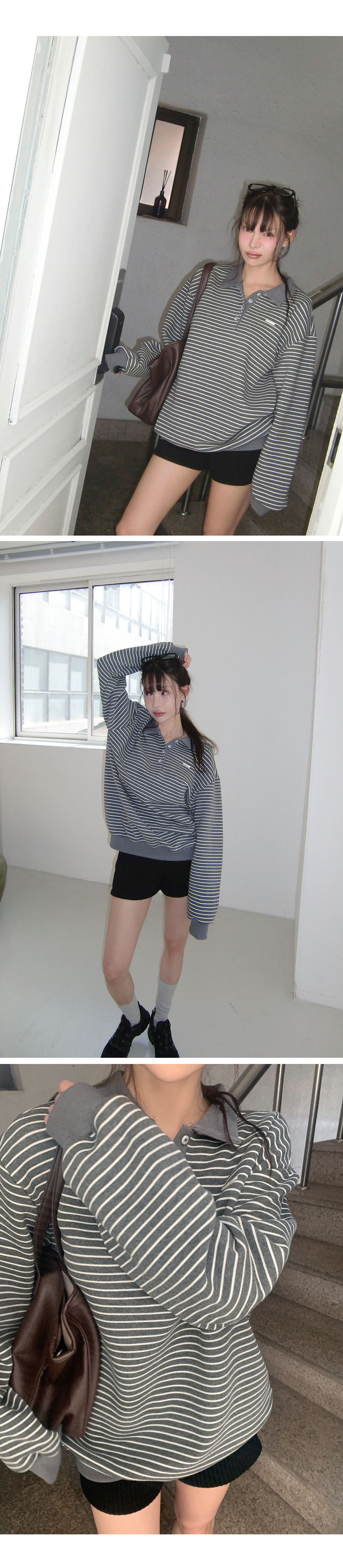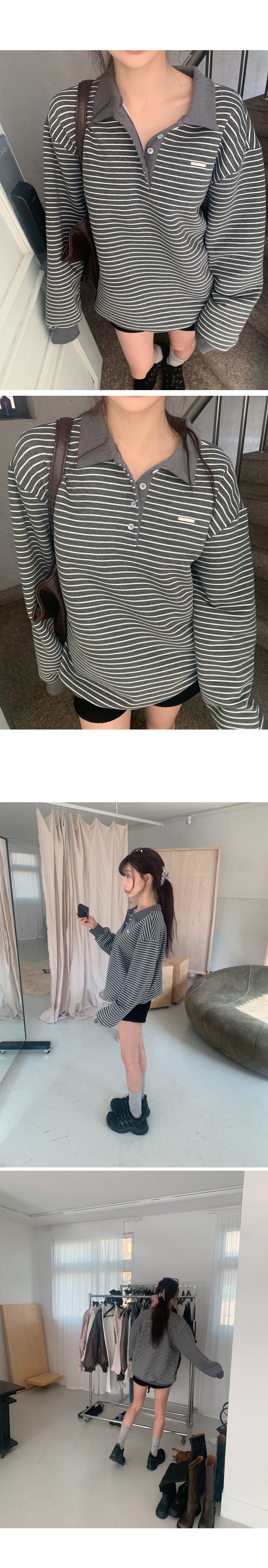 [MADE/컬러추가,오늘출발,무배]히트 스트라이프 럭비 카라 맨투맨 #오버핏맨투맨 #카라맨투맨 #버튼맨투맨 #단가라맨투맨 #스트라이프맨투맨