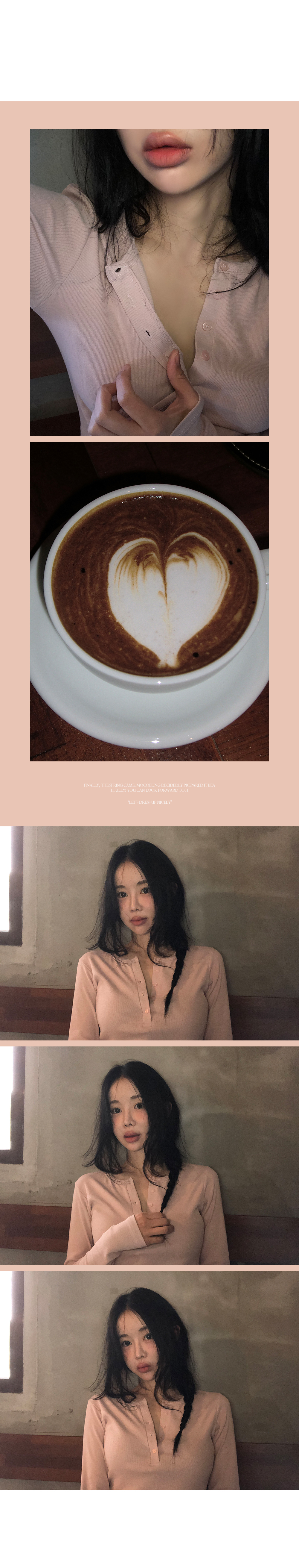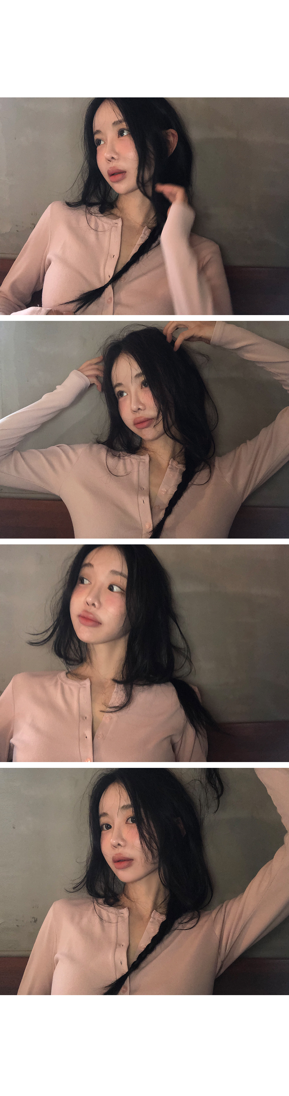 “골반은 평균이며 엉덩이가 작고 하의는 S사이즈를 입어요.  다리가 긴 편이라서 짧 은 기장감의 하의는 M사이즈도 입어요.  상의는 어깨가 있는 편이고 가슴사이즈는75C입니다.”