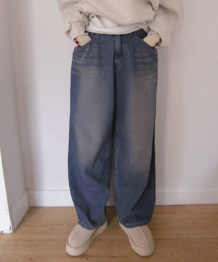 # 은은한 워싱 디테일의 와이드핏 기모 데님팬츠