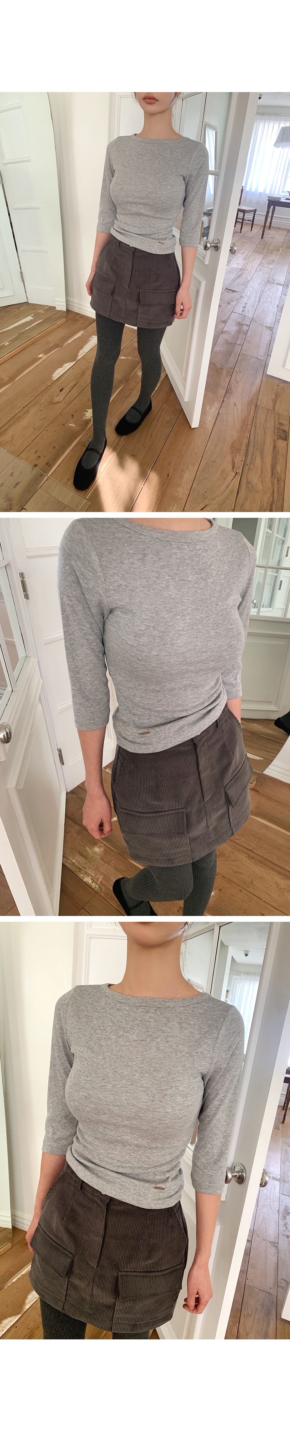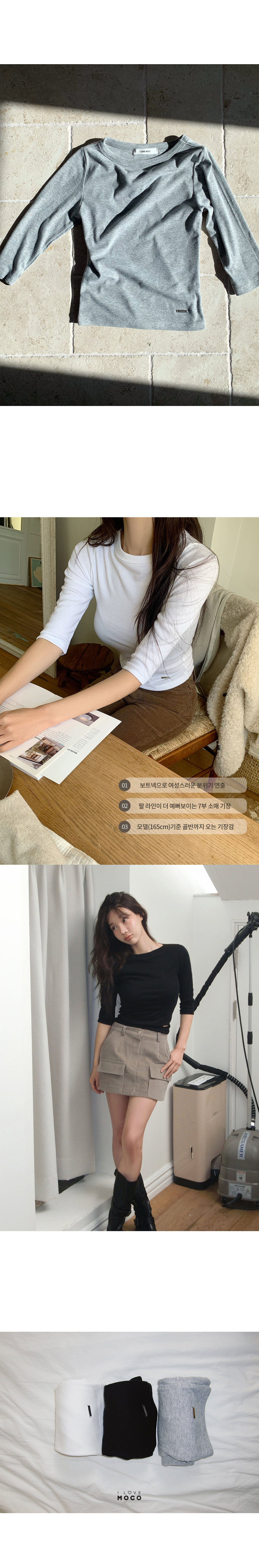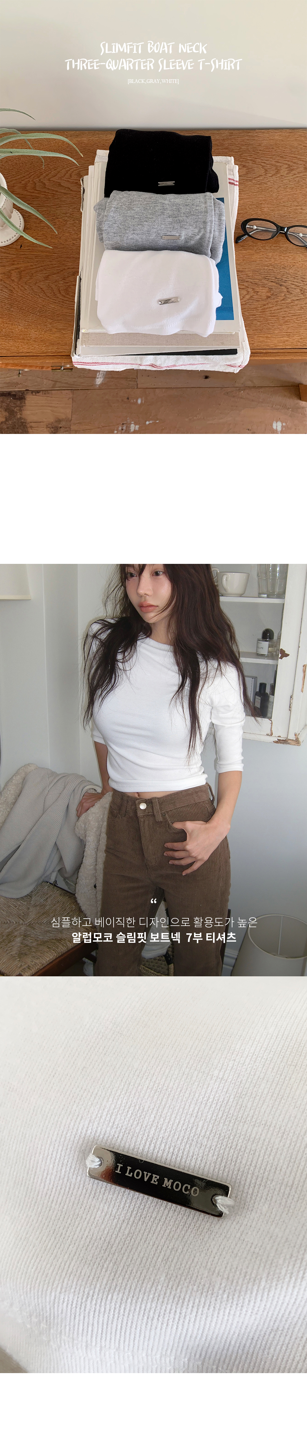 심플하고 베이직한 디자인의 알럽모코 슬림 보트넥 7부 티셔츠:)