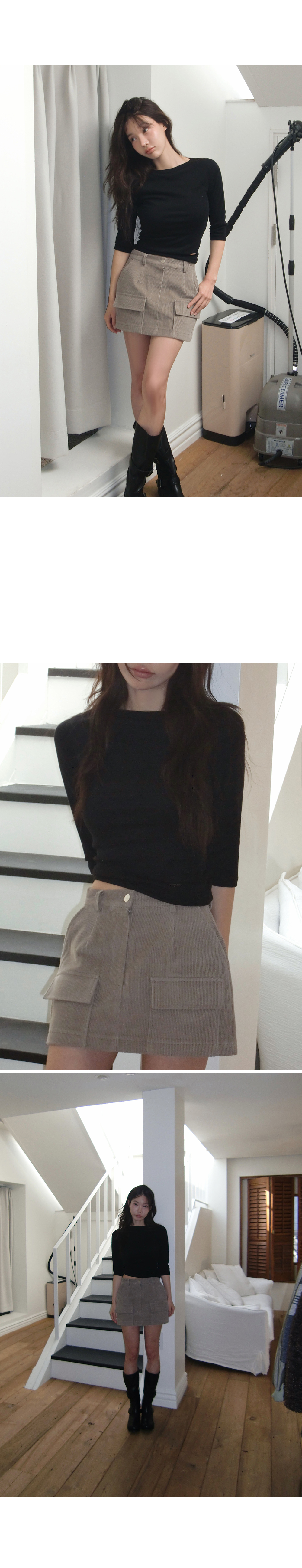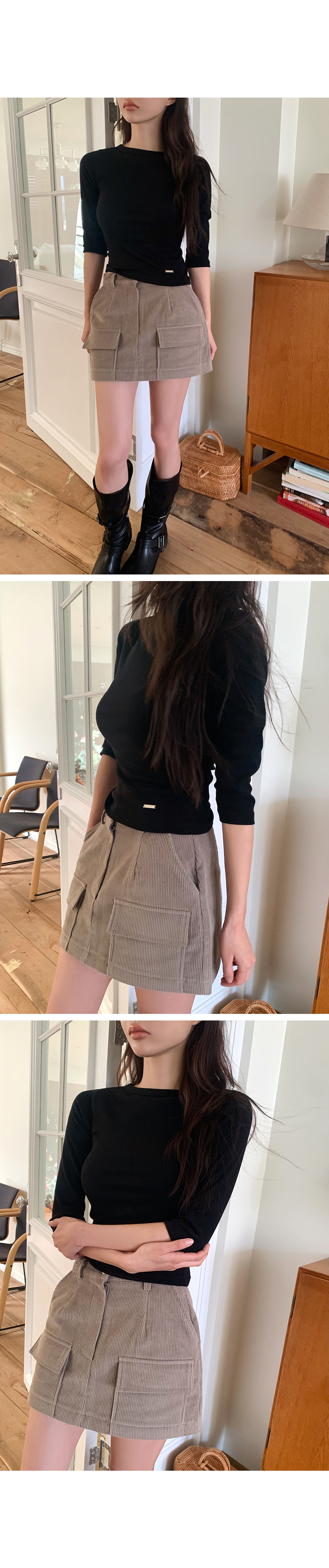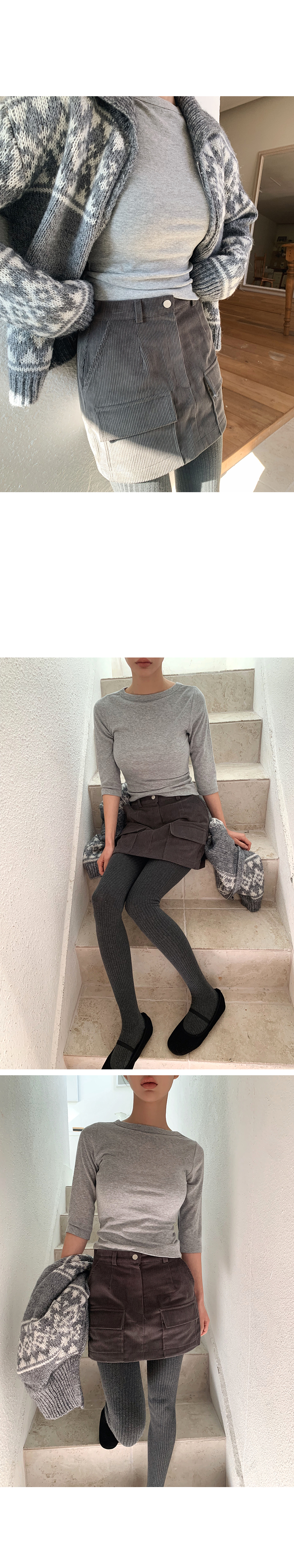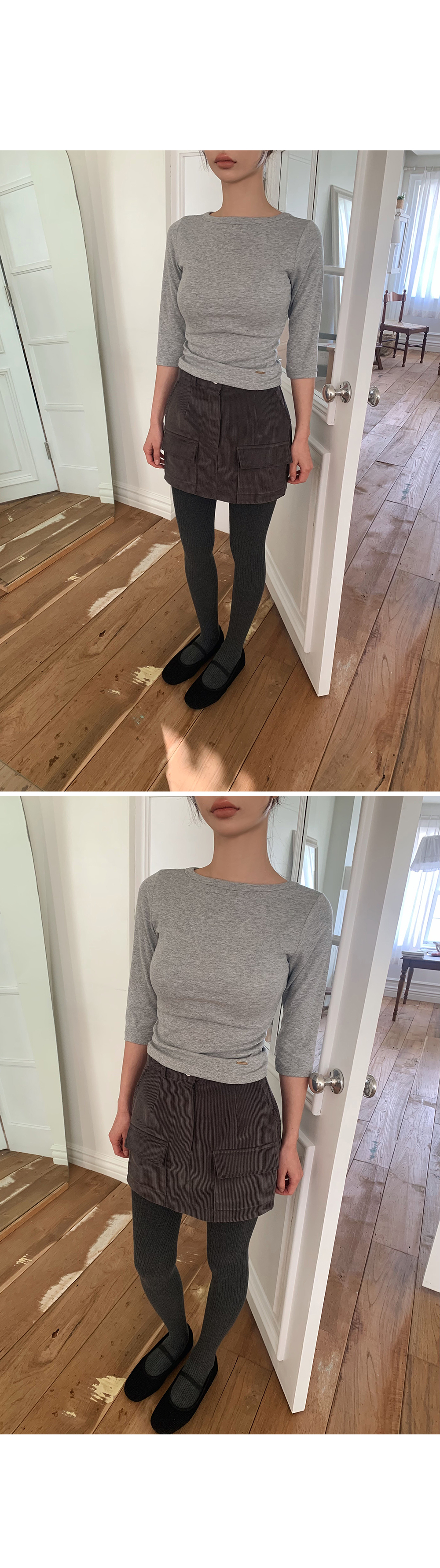 심플하고 베이직한 디자인의 알럽모코 슬림 보트넥 7부 티셔츠:)