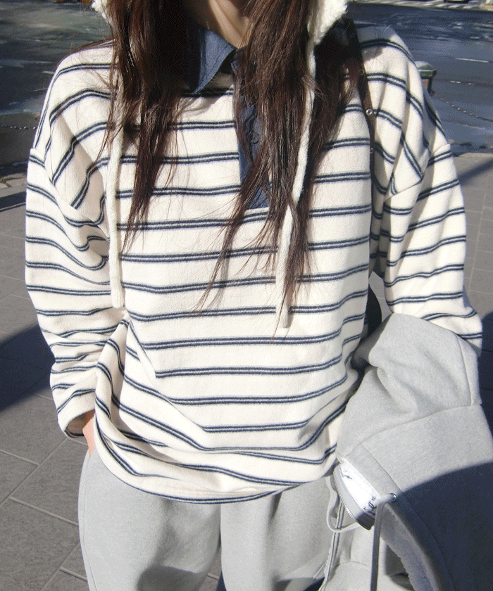# 데님 카라 디테일의 기모 단가라 티셔츠