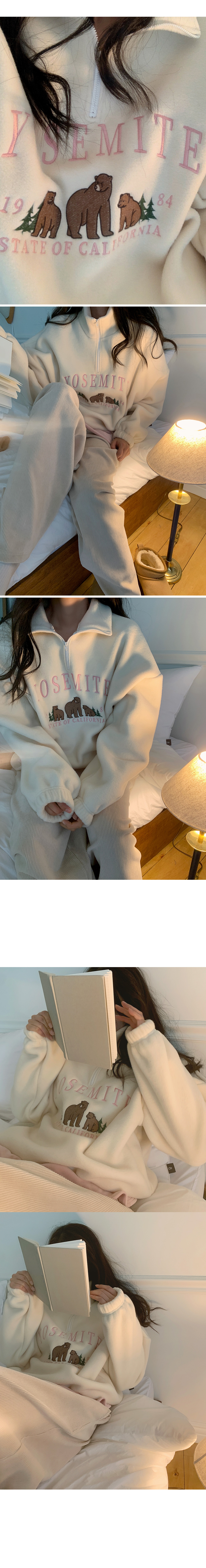 인기최고,재진행! 보송하고 따듯한 후리스 소재로 보여드리는 모코위드의 자수 양기모 후리스 반집업 맨투맨