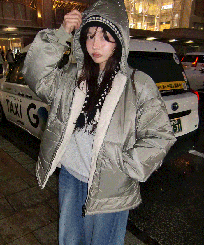 양털 안감이 더해져 겨울에도 따뜻하게 착용가능한 후드 패딩 점퍼