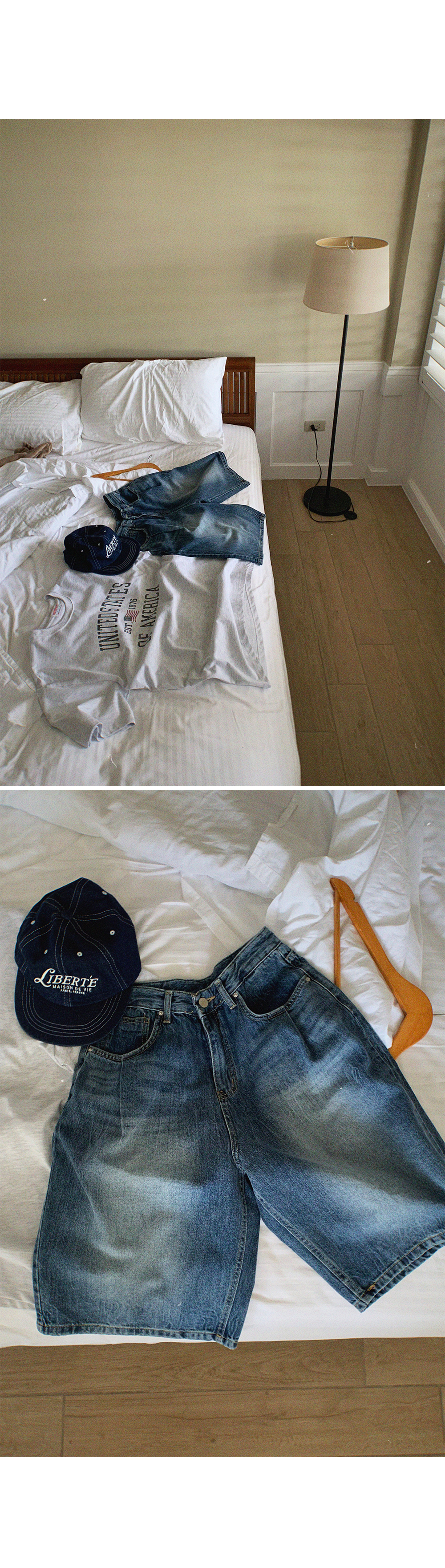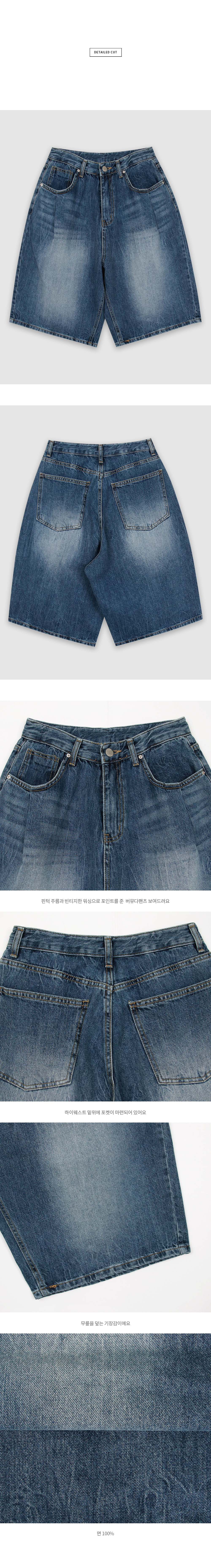 핀턱 주름과 빈티지한 워싱으로 포인트를 준 버뮤다팬츠