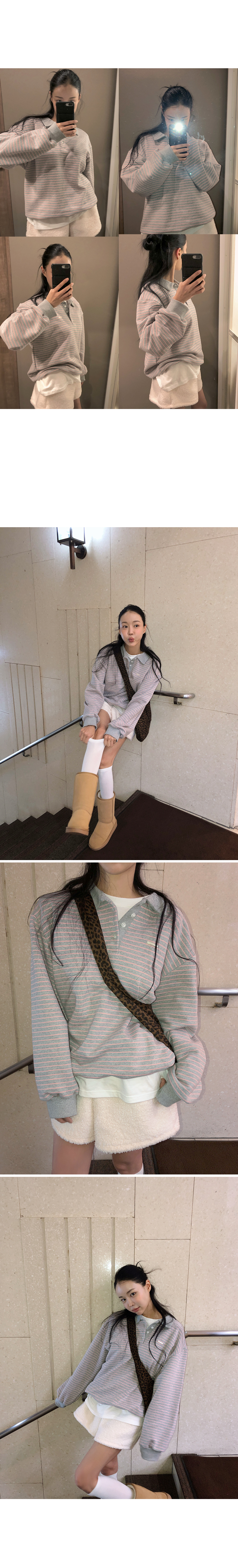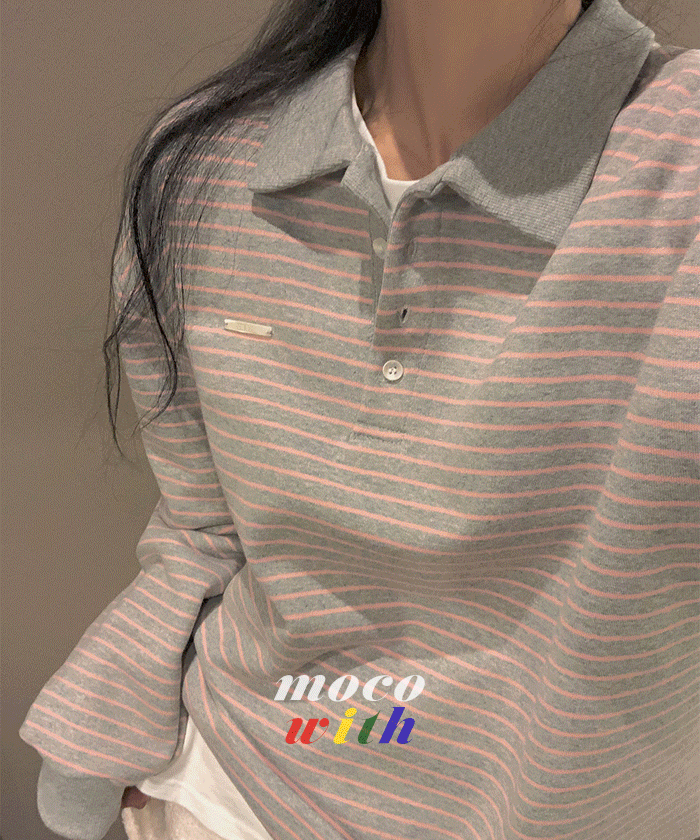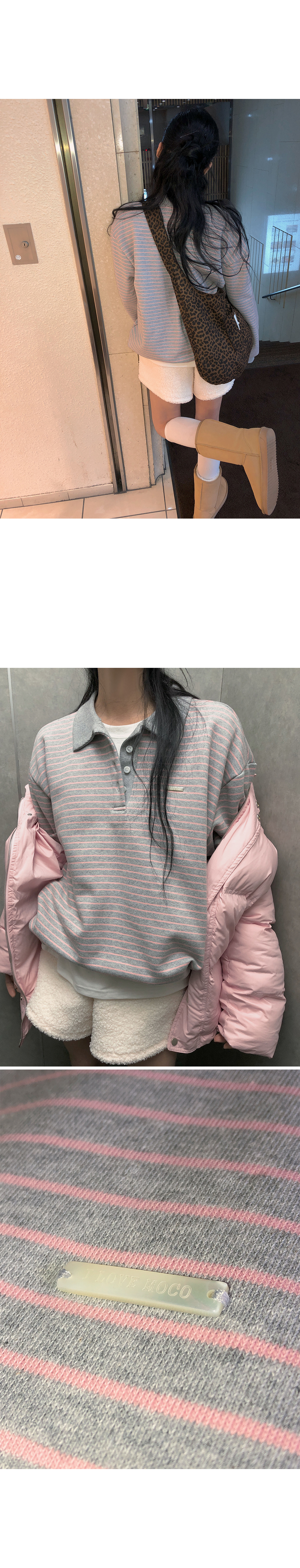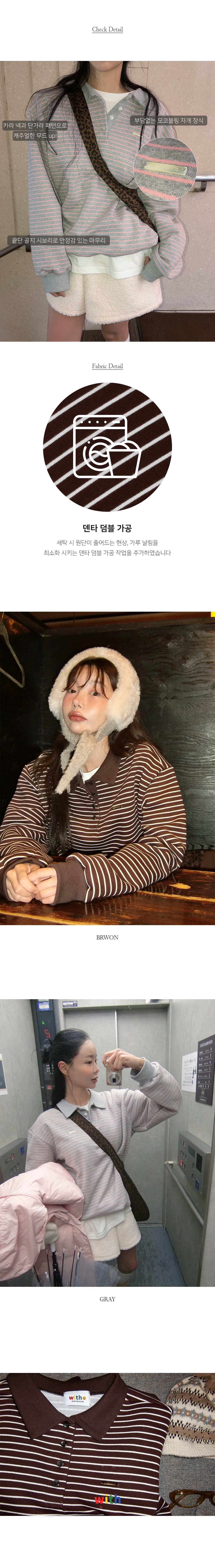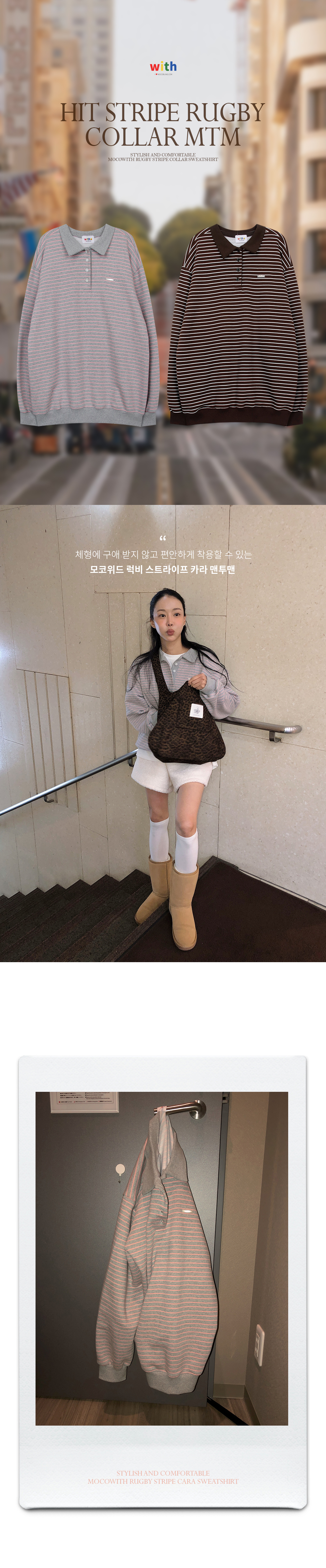 캐주얼하게 입기 좋은 배색 단가라 패턴의 모코위드 카라 맨투맨