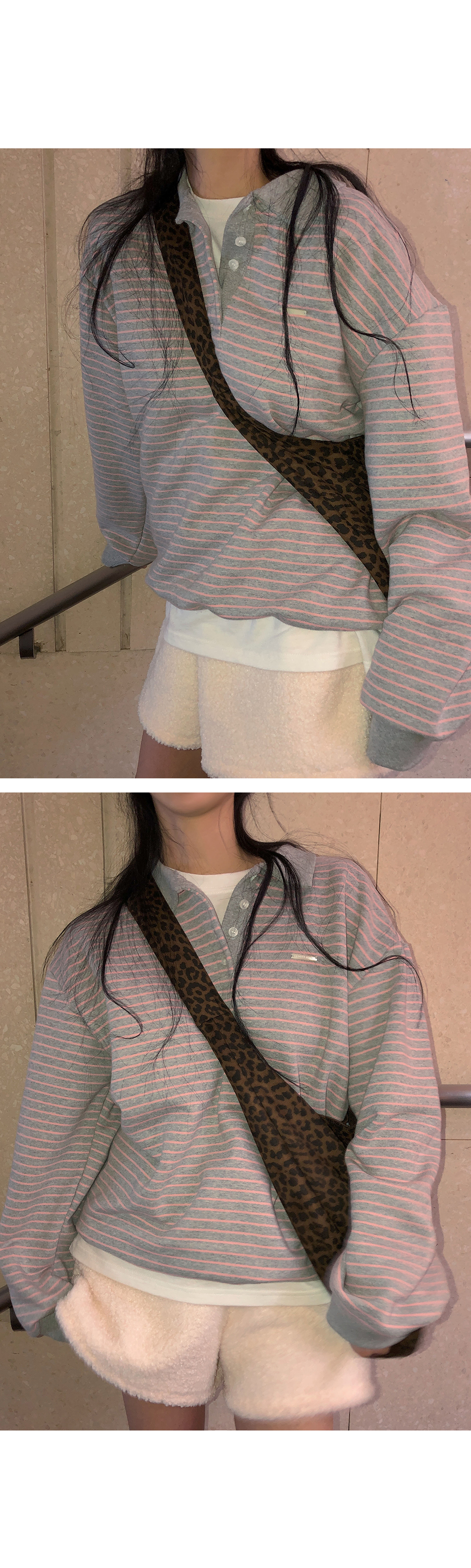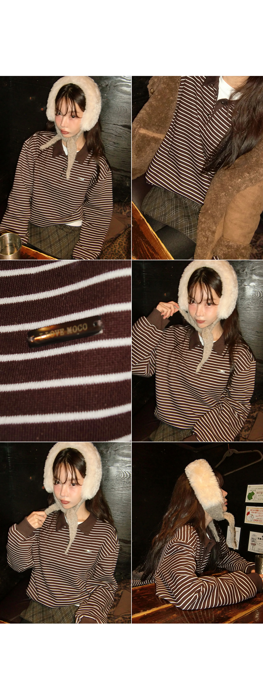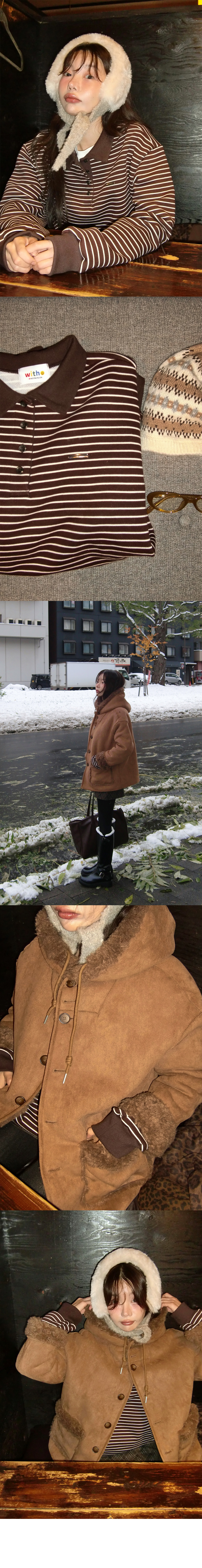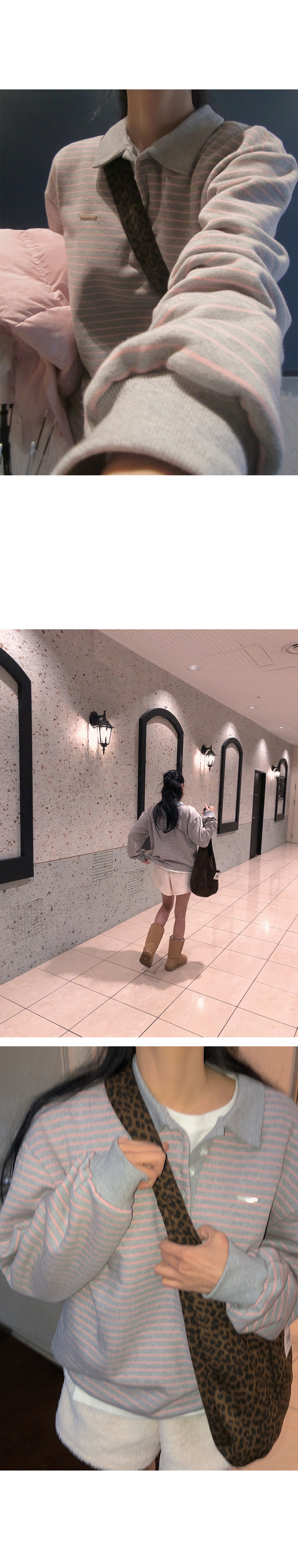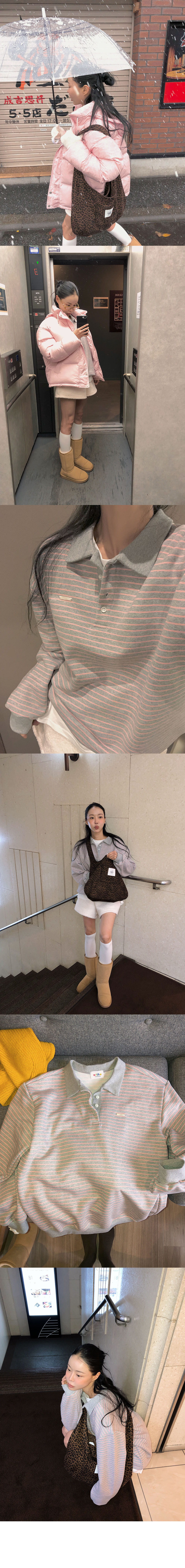 캐주얼하게 입기 좋은 배색 단가라 패턴의 모코위드 카라 맨투맨