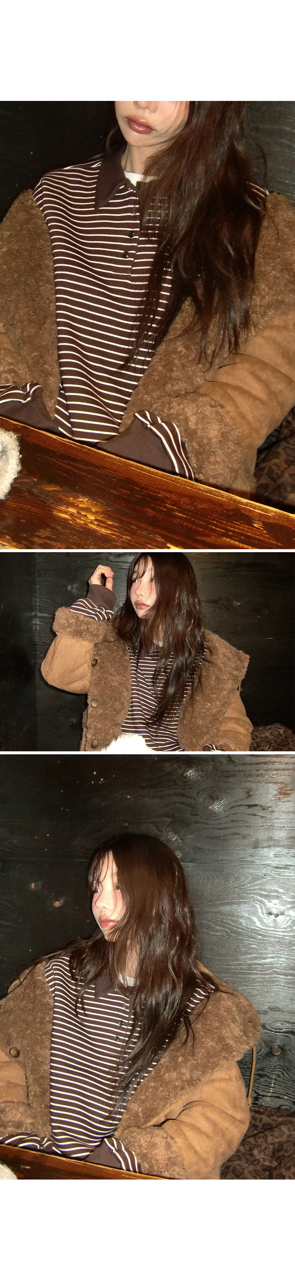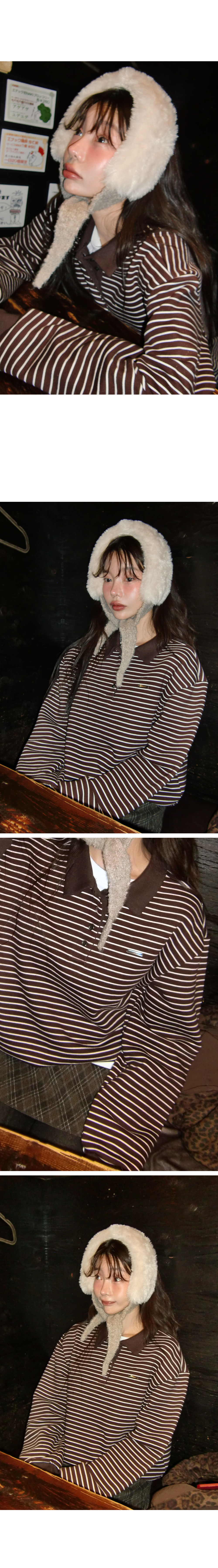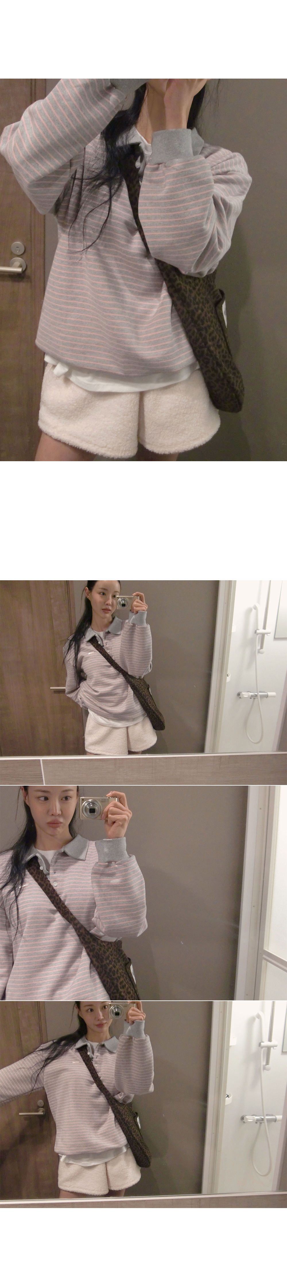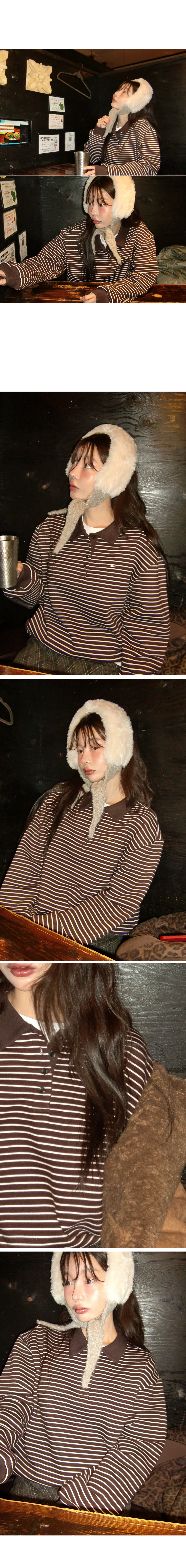 캐주얼하게 입기 좋은 배색 단가라 패턴의 모코위드 카라 맨투맨