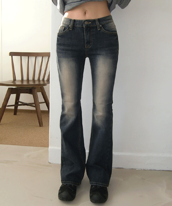 # 빈티지한 워싱의 로우 부츠컷 데님팬츠