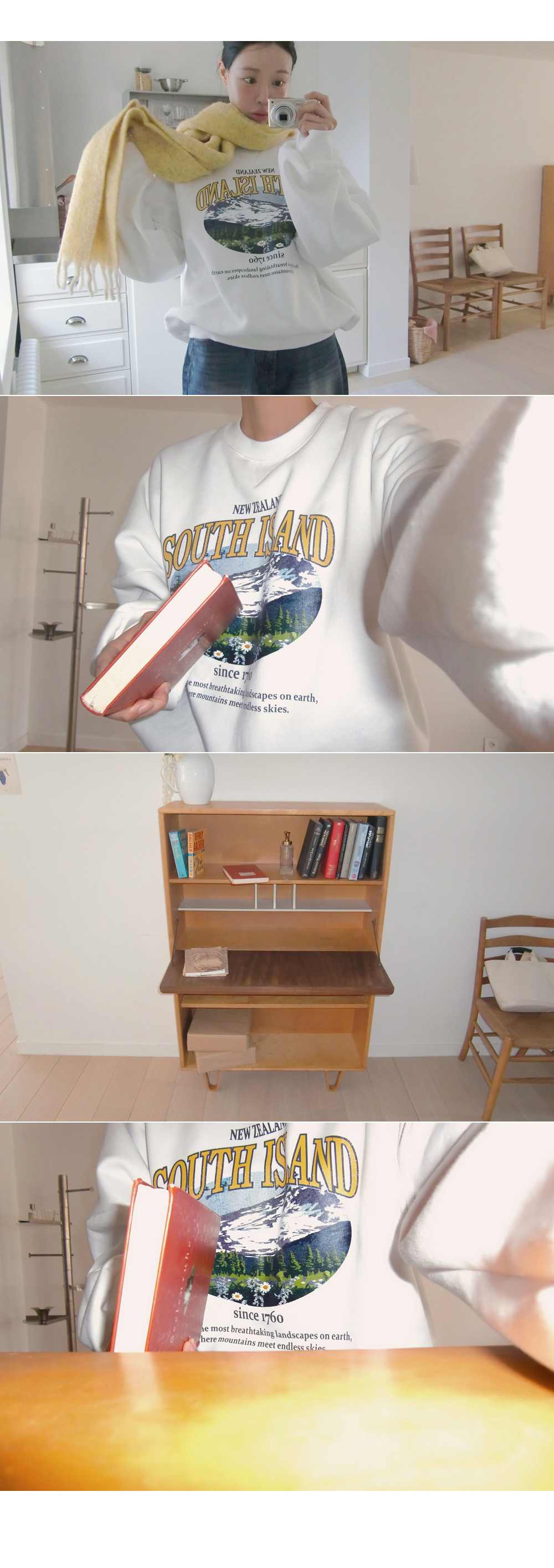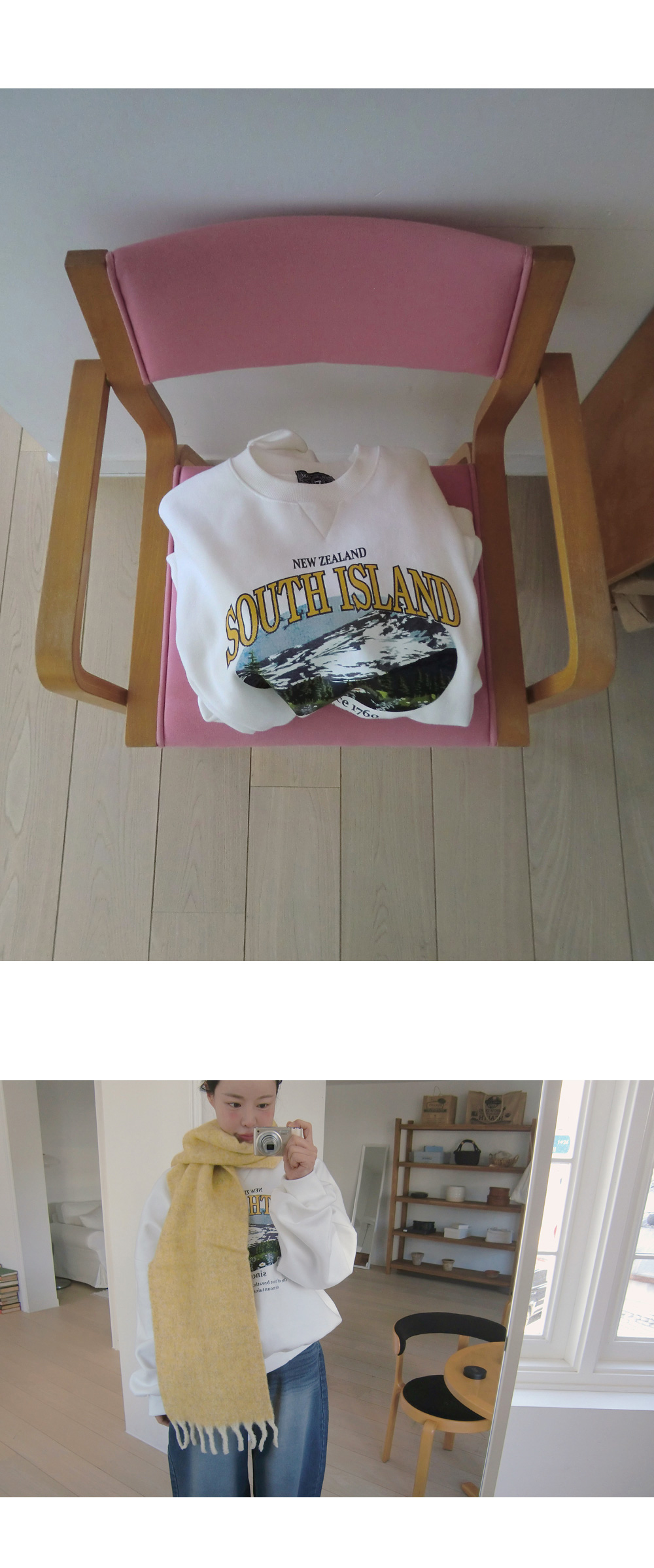 “골반은 평균이며 엉덩이가 작고 하의는 S사이즈를 입어요. 다리가 긴 편이라서 짧 은 기장감의 하의는 M사이즈도 입어요. 상의는 어깨가 있는 편이고 가슴사이즈는75C입니다.”