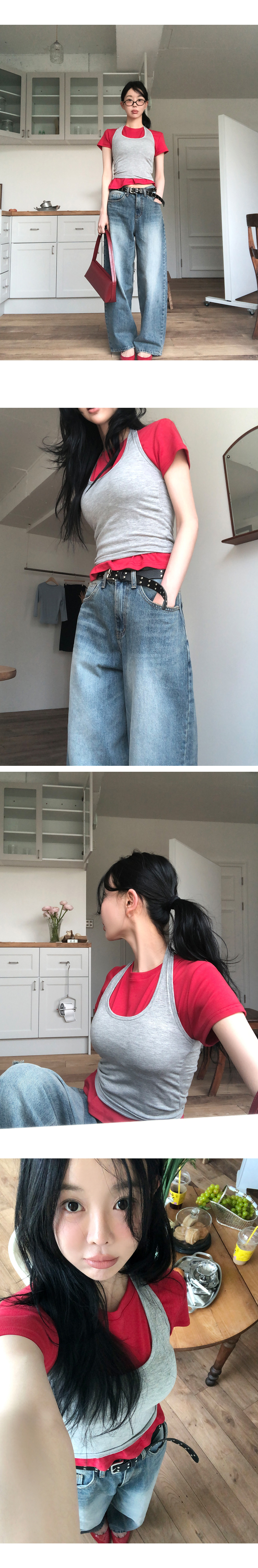 “골반은 평균이며 엉덩이가 작고 하의는 S사이즈를 입어요. 다리가 긴 편이라서 짧 은 기장감의 하의는 M사이즈도 입어요. 상의는 어깨가 있는 편이고 가슴사이즈는75C입니다.”