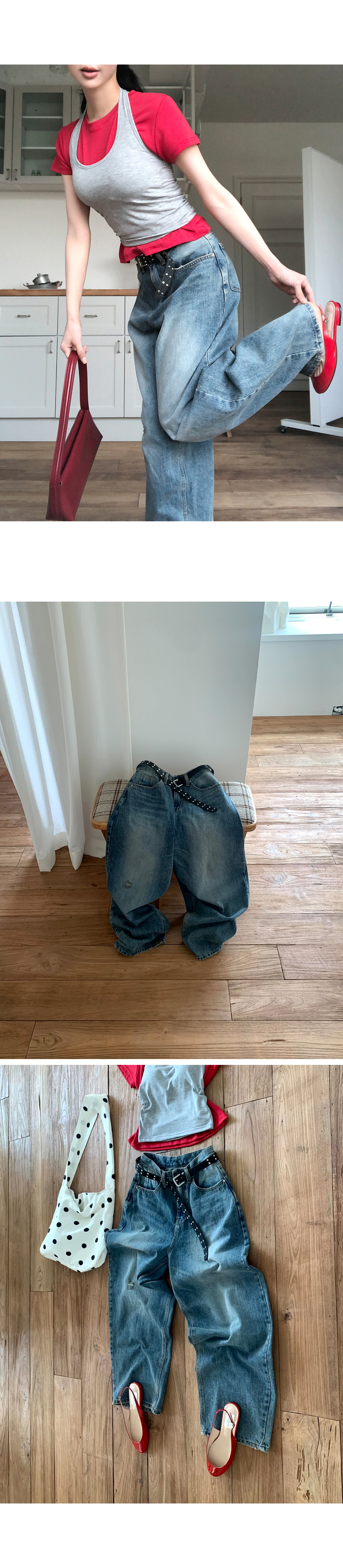 벨로아 빅골지 원단에 힙 포켓 버튼으로 포인트를 준 알럽모코 투웨이 밴딩 와이드팬츠