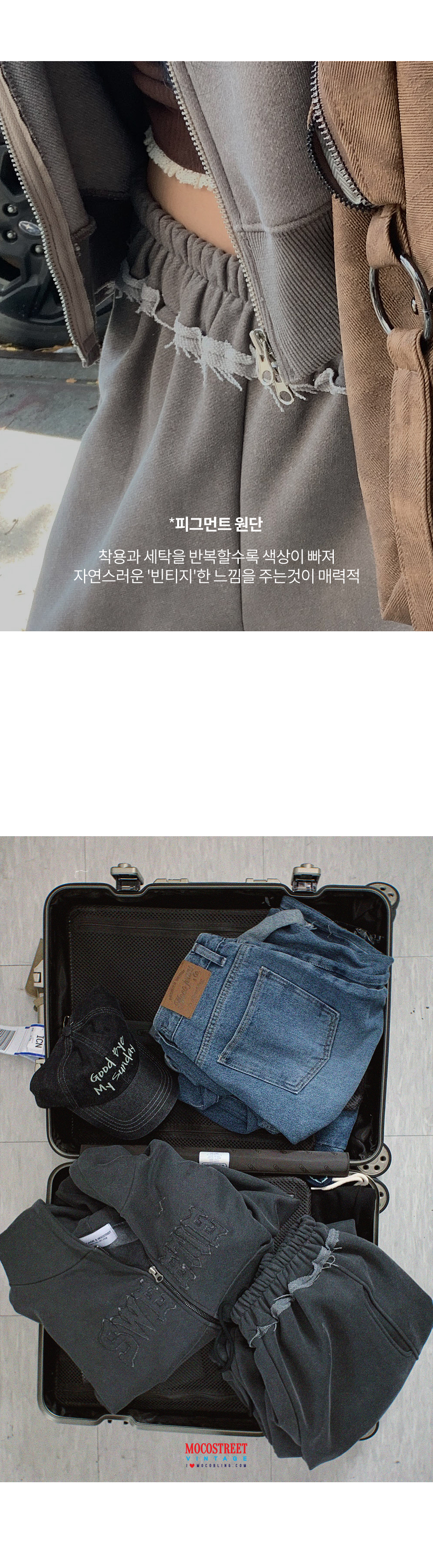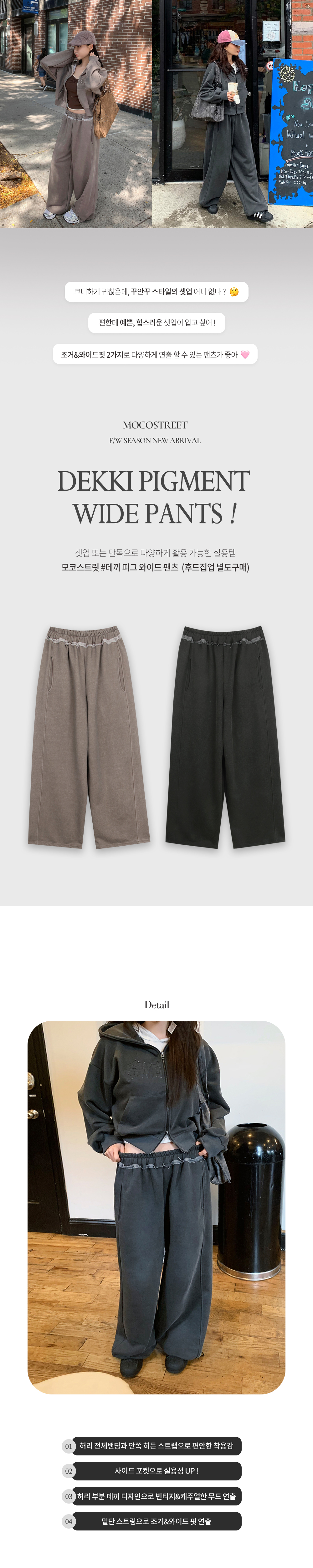 피그먼트 워싱과 데끼 디자인으로 빈티지한 분위기를 주는 모코스트릿의 와이드팬츠