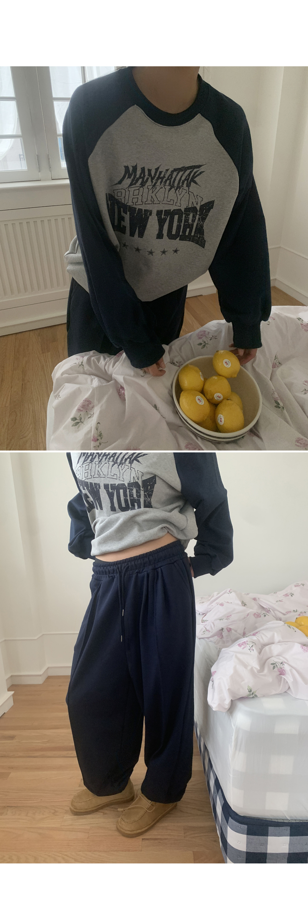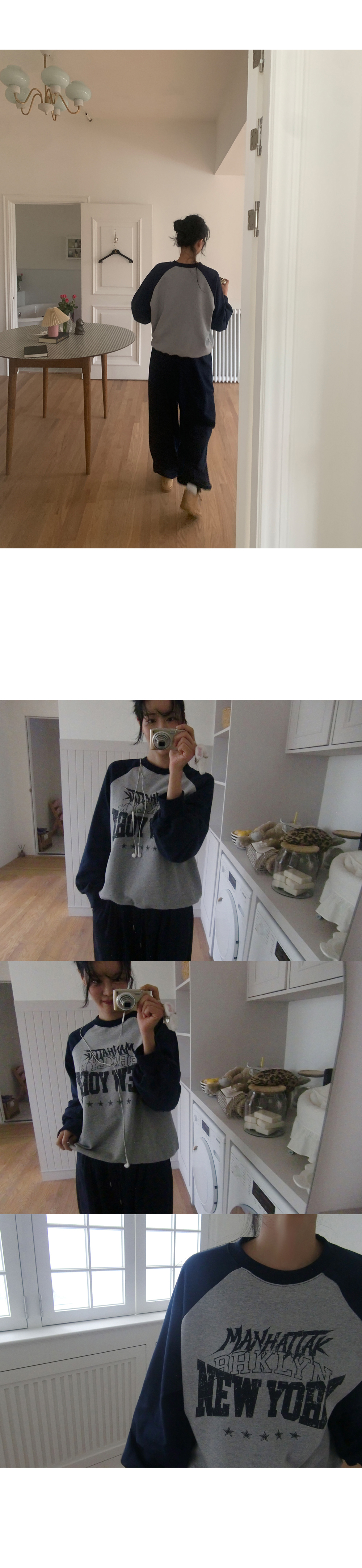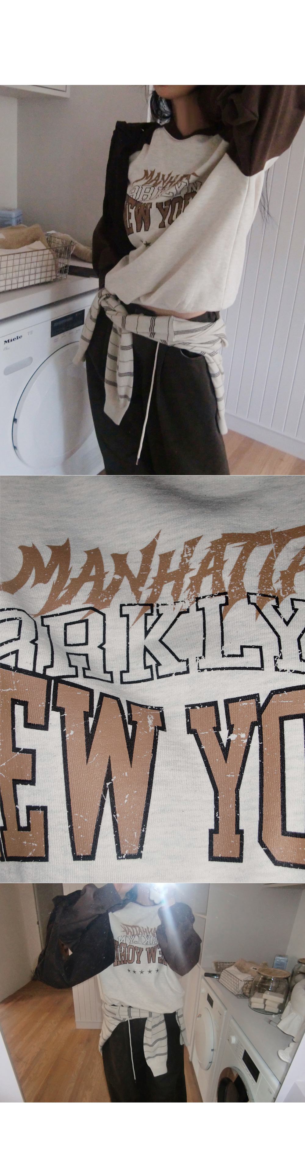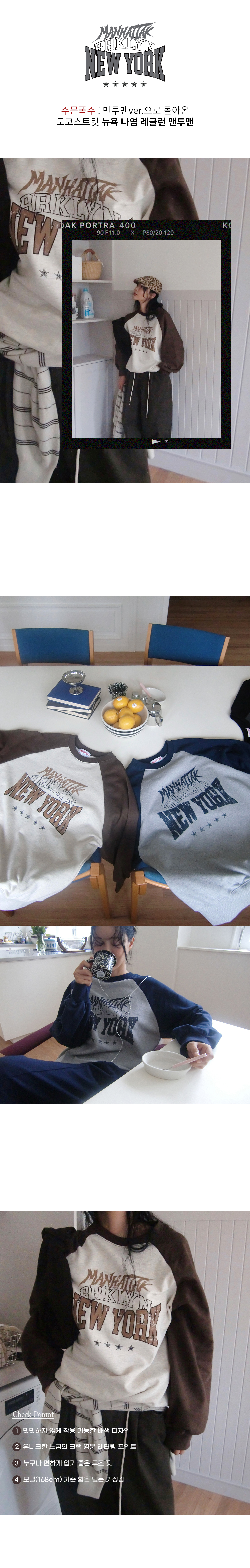 빈티지한 뉴욕 크랙나염, 캐주얼한 레글런 디자인으로 모코스트릿만의 특별한 맨투맨.